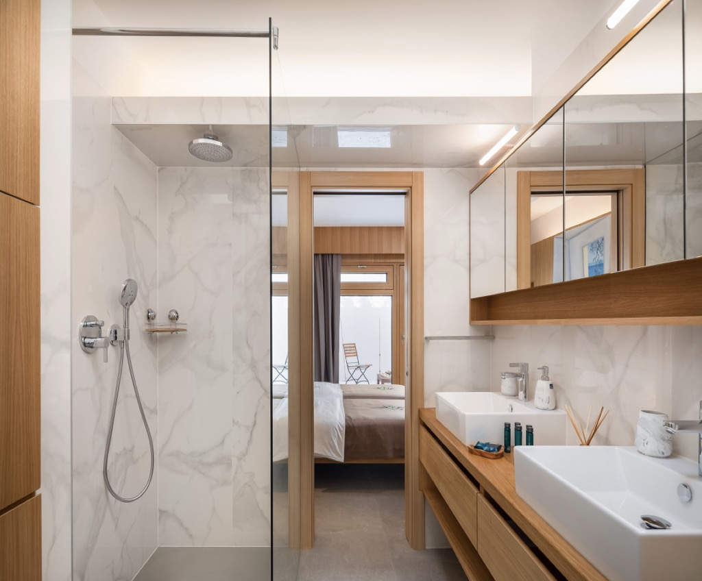 Klimatizace a podlahové vytápění zajišťují hostům pohodlí po celý rok, zatímco moderní vybavení, jako je výtah, poskytuje pohodlí a dostupnost pro všechny.