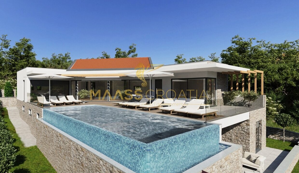 Dvoupatrový dům se spoustou užitného prostoru, zahradou, konobou a hlavně: výhledem na moře, na hory, na moře!...