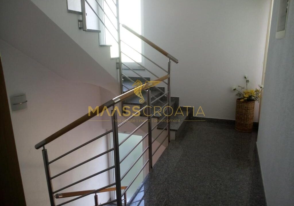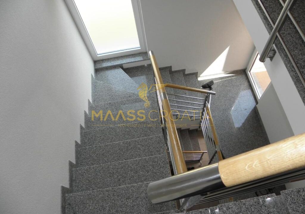 V prvním patře se nachází pohodlný, velký byt se třemi ložnicemi se samostatnými terasami, prostorný obývací pokoj s přilehlou kuchyní a jídelním koutem a vstupem na velkou terasu, dvě koupelny a dvě chodby.