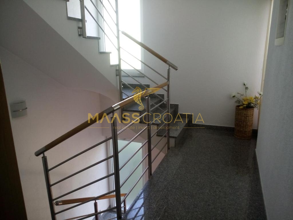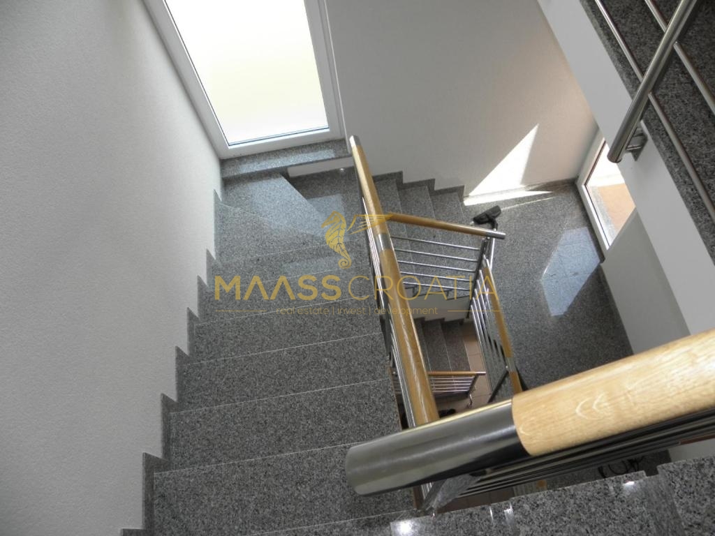 V prvním patře se nachází pohodlný, velký byt se třemi ložnicemi se samostatnými terasami, prostorný obývací pokoj s přilehlou kuchyní a jídelním koutem a vstupem na velkou terasu, dvě koupelny a dvě chodby.