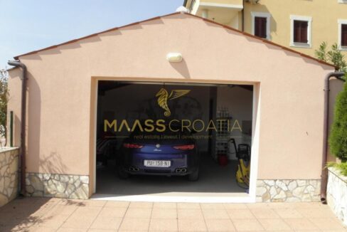 K vile patří garáž o rozloze 20 m² a další parkovací místa pro několik vozidel.