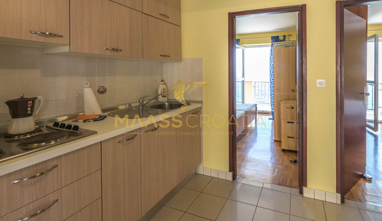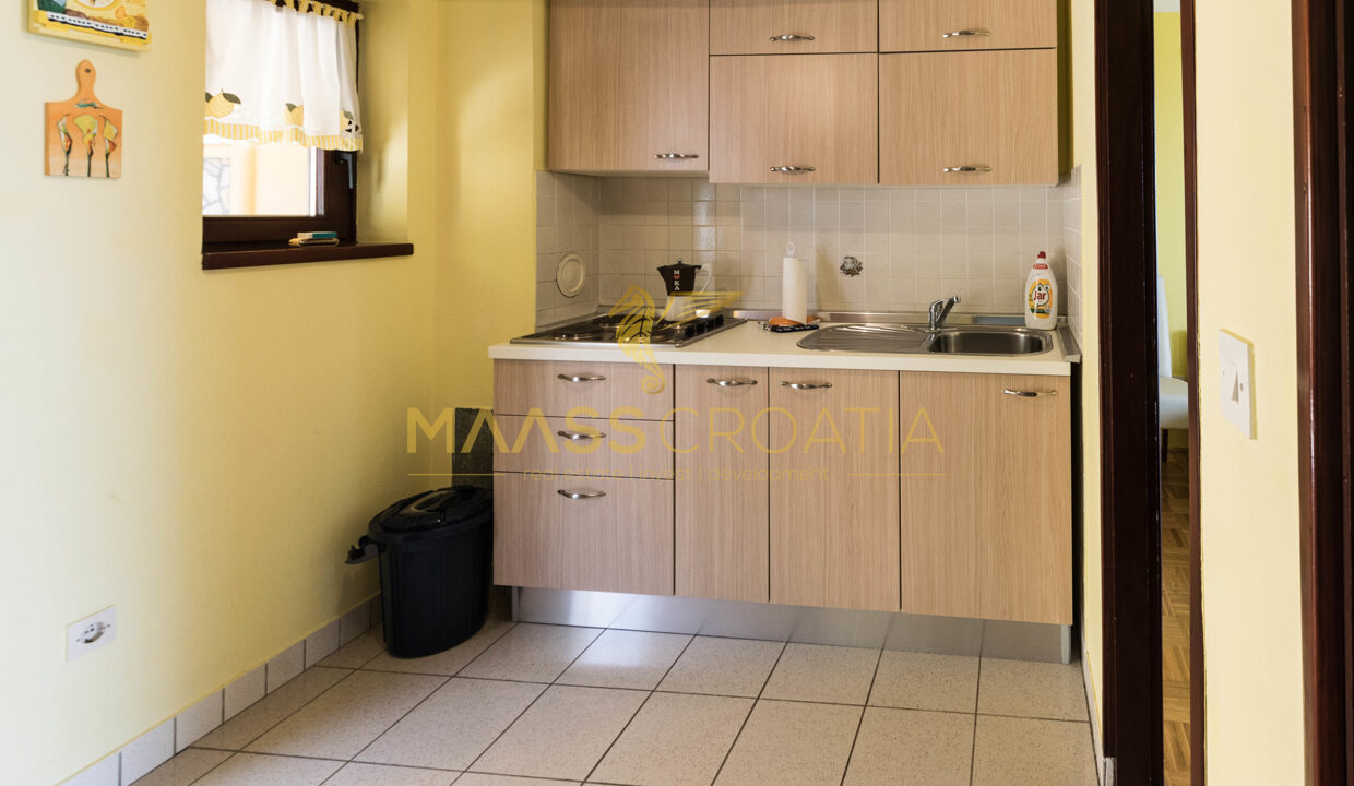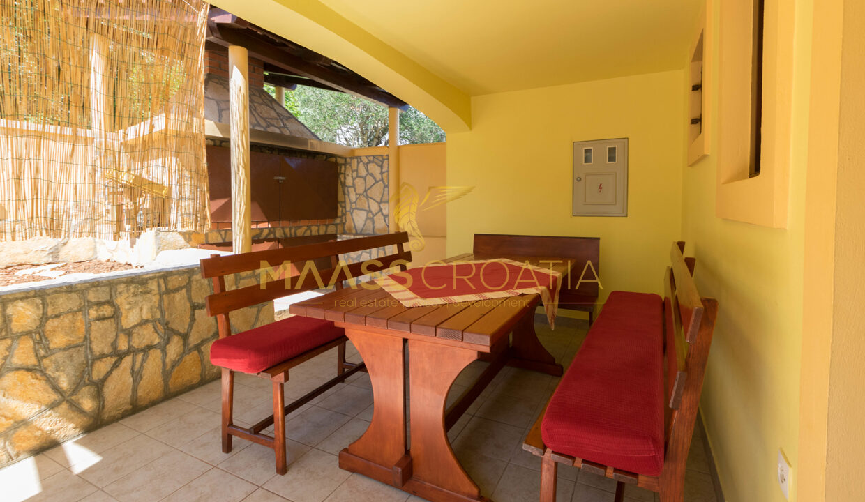 V prvním patře se nachází byt se 2 ložnicemi, které mají přístup na balkony s krásným výhledem na moře, Zadar a ostrov Ošljak. Před bytem v prvním patře se nachází prostorná terasa s krbem.