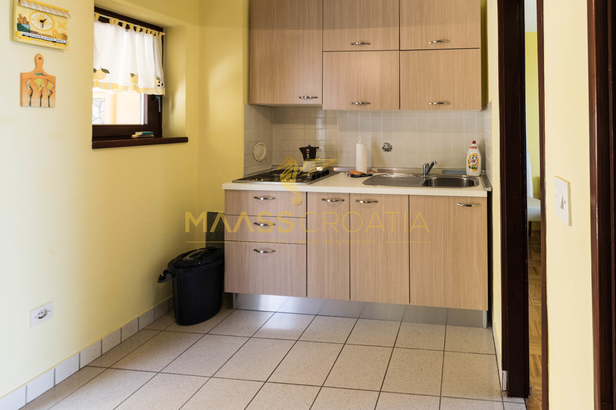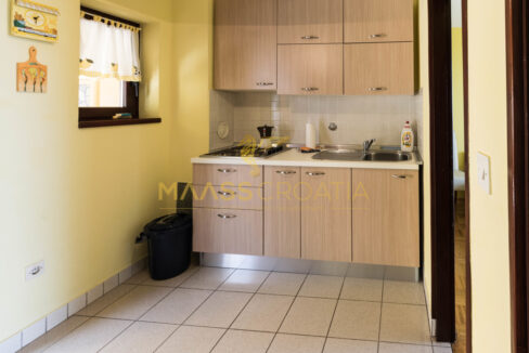 V prvním patře se nachází byt se 2 ložnicemi, které mají přístup na balkony s krásným výhledem na moře, Zadar a ostrov Ošljak. Před bytem v prvním patře se nachází prostorná terasa s krbem.