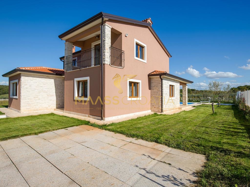 Nová krásná vila s bazénem na prodej, 4 km od moře. Má rozlohu 160 m2 a nachází se na pozemku o velikosti 820 m2.