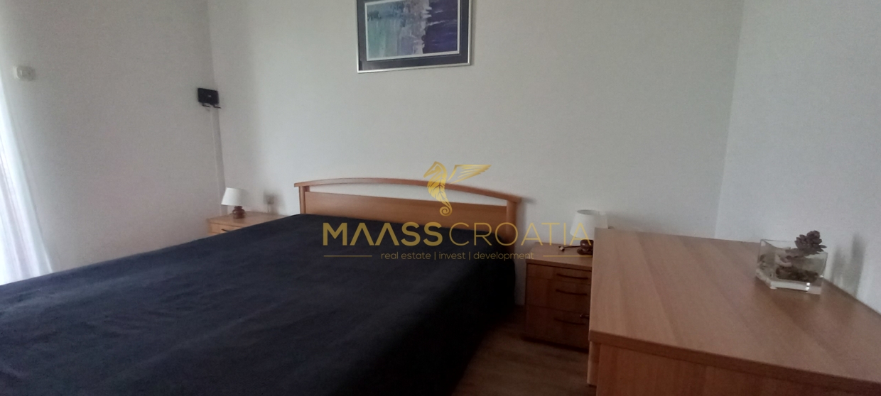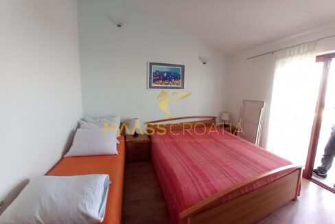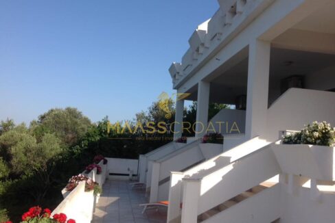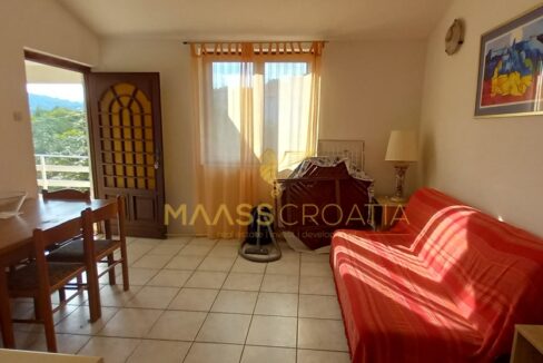 Jedes der 6 Apartments bietet einen Wohnraum mit Küche, ein Schlafzimmer, Bad und großen Balkon mit traumhaftem Blick auf viel Grün, das Meer und die gegenüber liegende Stadt Zadar.