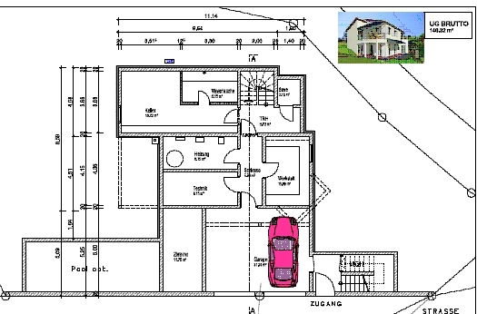 Eine vormals erteilte lokale Baugenehmigung für die Errichtung eines Einfamilienhauses mit separatem Studioappartement und einem Swimmingpool liegt vor.