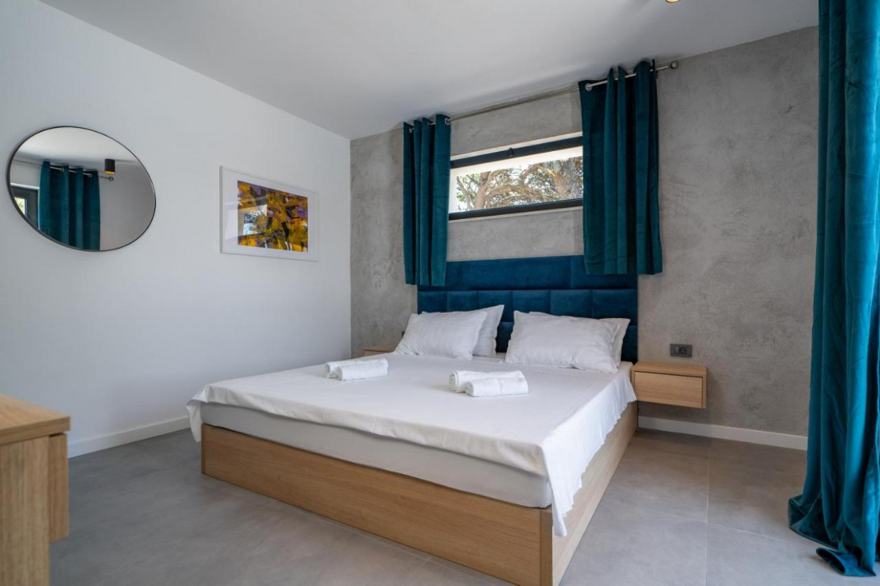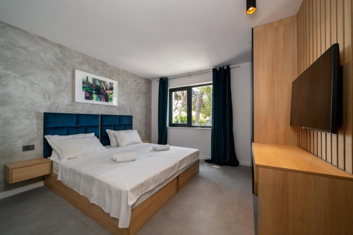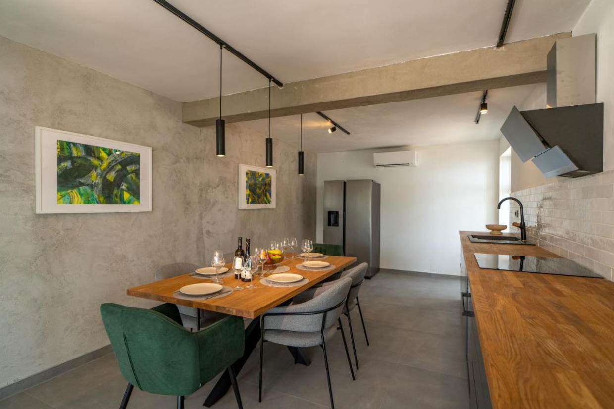 Relaxujte v prostorném venkovním areálu, který se rozkládá na pozemku o rozloze 1100 m2. Bujná zahrada a terasa poskytují ideální prostředí pro stolování pod širým nebem nebo pro vychutnávání sklenky vína při sledování západu slunce nad křišťálově čistými vodami Jaderského moře.