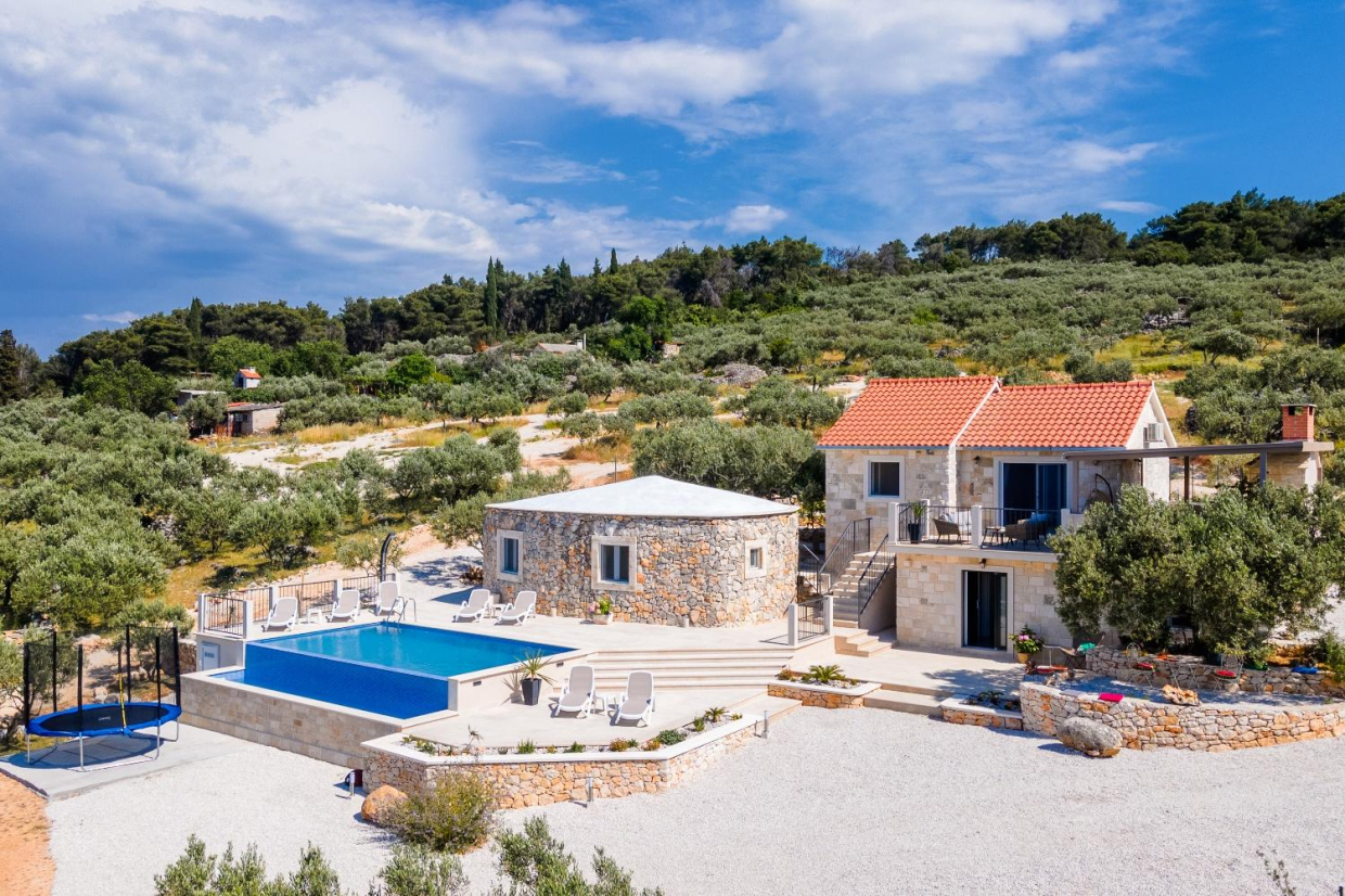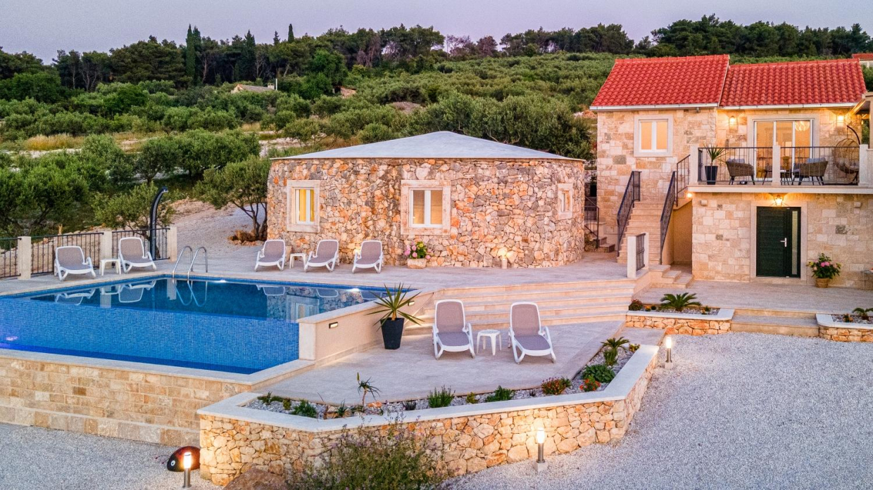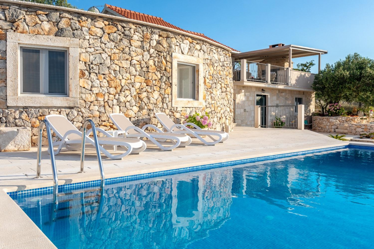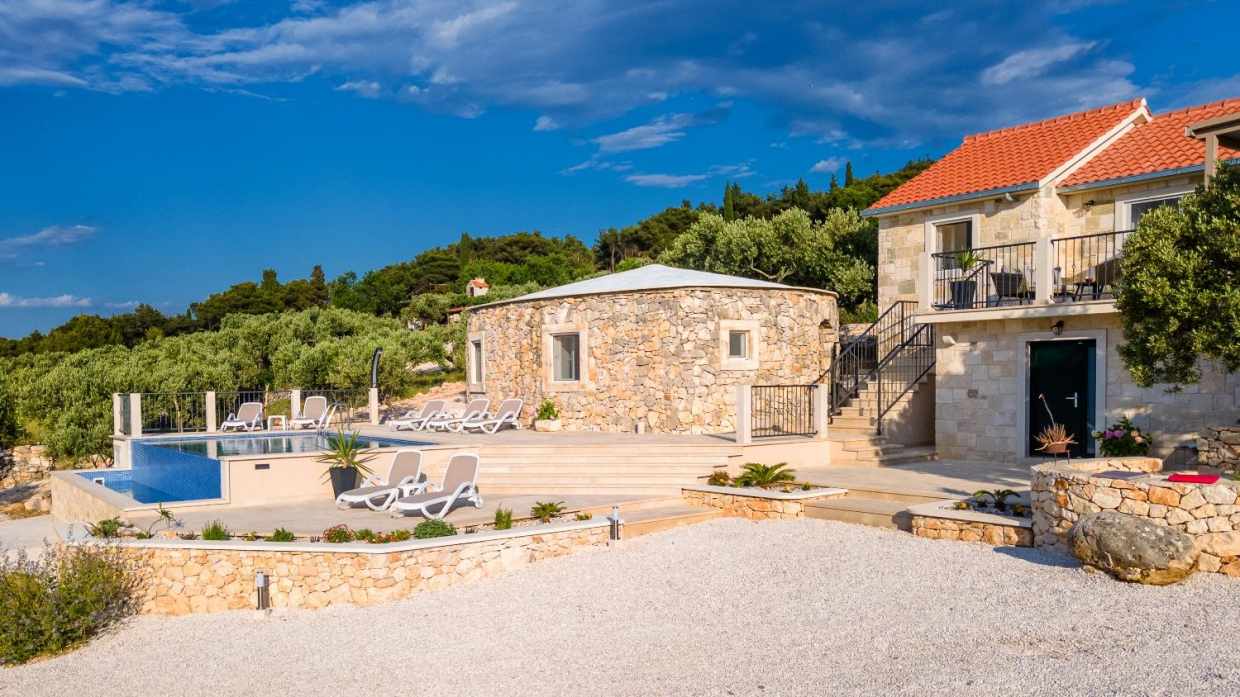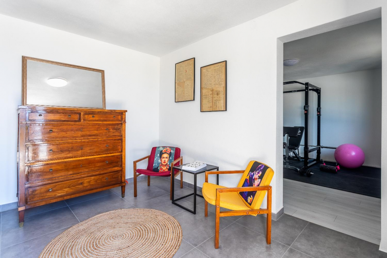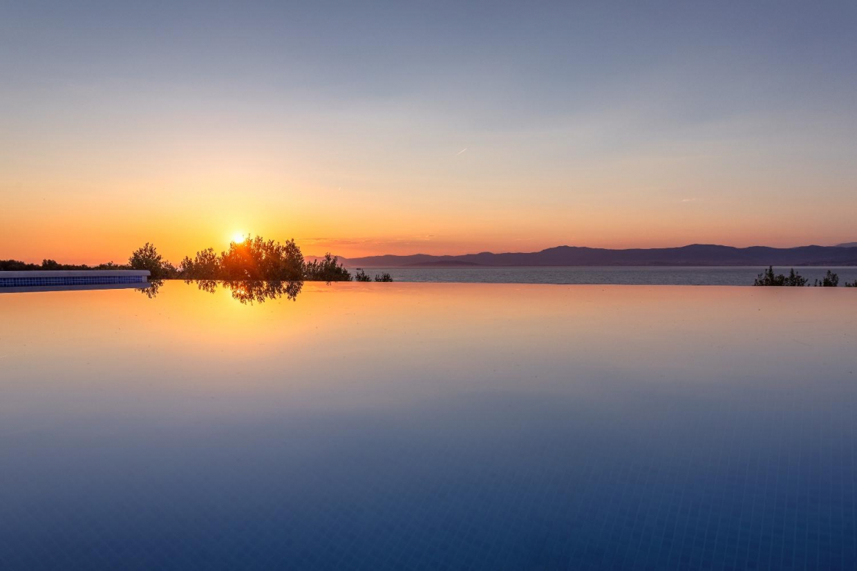Mix stylů: Jednoduchý styl Bauhaus ve středomořské krajině: vila s bazénem a výhledem na moře