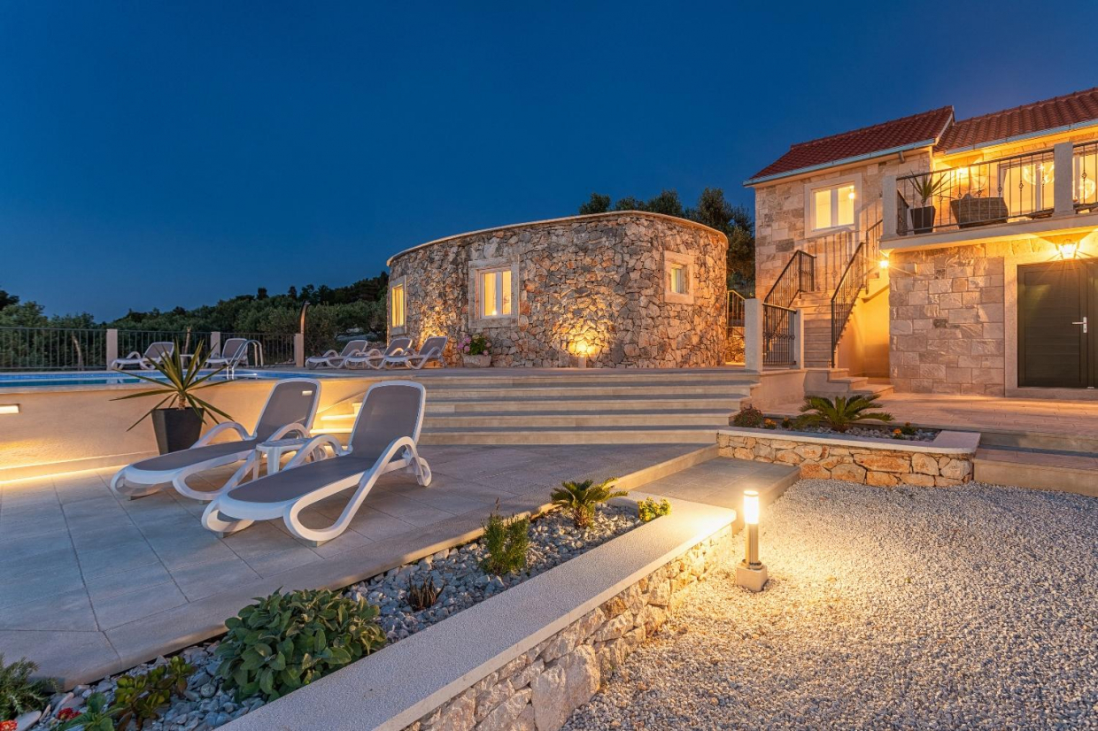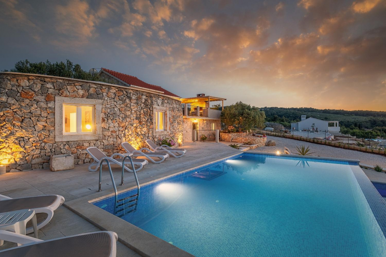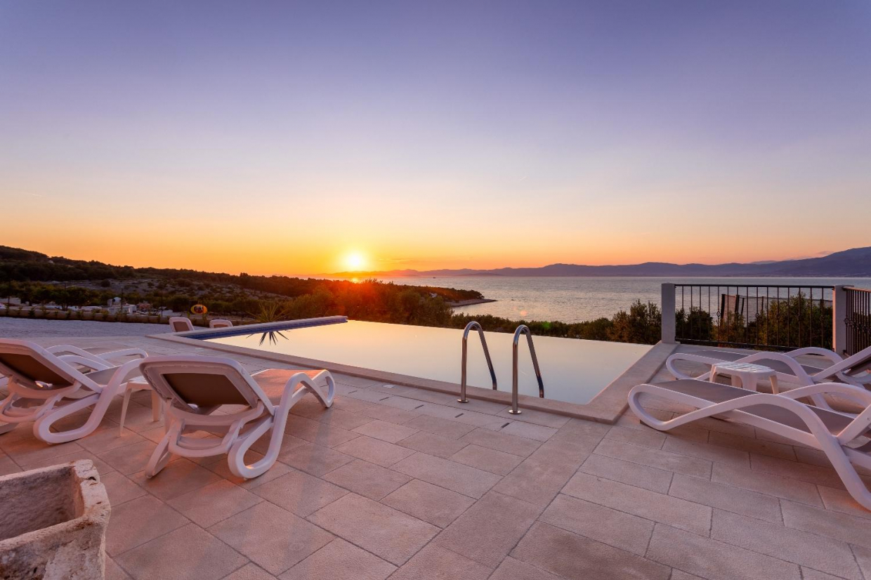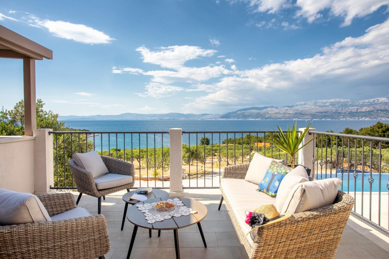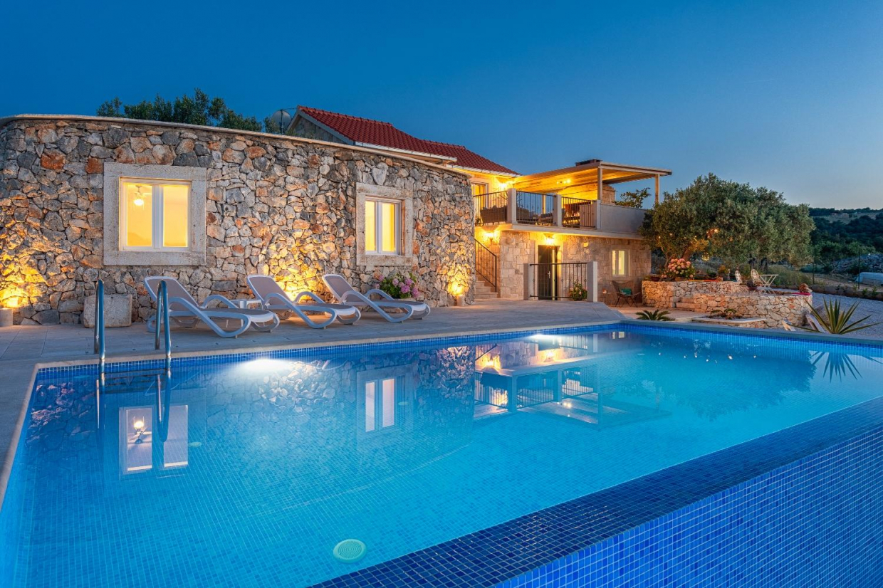 Mix stylů: Jednoduchý styl Bauhaus ve středomořské krajině: vila s bazénem a výhledem na moře