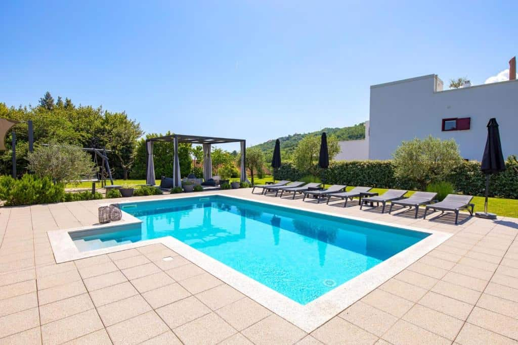 Mit einer geräumigen Innenfläche von 220 m2 verfügt dieses Haus über fünf Schlafzimmer und fünf Bäder und ist damit ideal für große Familien oder Gruppen von Freunden. Das Highlight dieses Anwesens ist der 32 m2 große Swimmingpool, in dem die Gäste entspannen und Sonne tanken können, während sie die atemberaubende Aussicht auf die umliegende Landschaft genießen. Darüber hinaus gibt es ausreichend Parkplätze für bis zu fünf Fahrzeuge, so dass auch Gäste mit eigenem Fahrzeug auf ihre Kosten kommen.