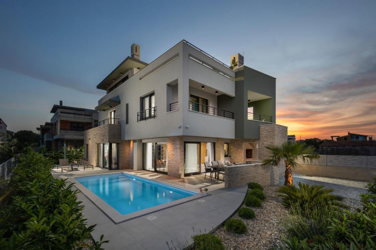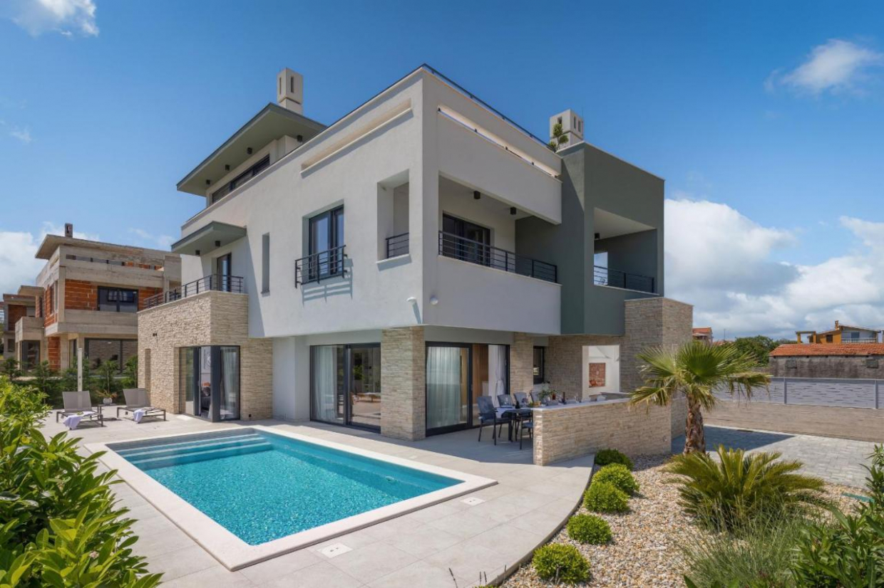 Nabízíme k prodeji luxusní dvojdomek s výhledem na moře a bazénem v Umagu. Celková plocha vily je 210 m2. Vila...