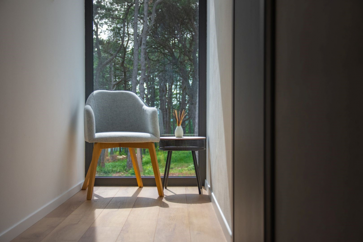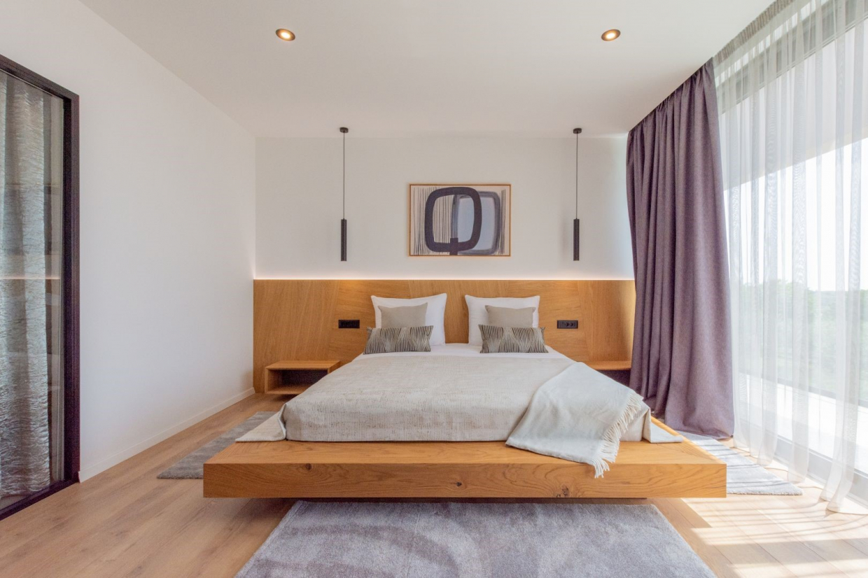Samotná vila má prostorný interiér s obytnou plochou 320 m2. Díky 4 ložnicím a 6 koupelnám je zde dostatek prostoru pro velké rodiny nebo skupiny přátel. Otevřený obývací a jídelní prostor je ideální pro zábavu a díky velkým oknům nabízí nádherný výhled na okolní krajinu.