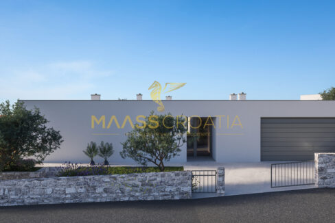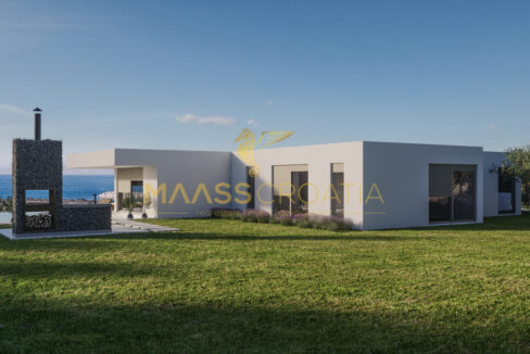 V přízemí se vstupem vchází do dvou chodeb, které vedou do obývacího prostoru s kuchyní a jídelnou s velkými prosklenými stěnami. Odtud je přístup na pohodlnou terasu 30,60 m2, kde se nachází bazén, zasazený do vizuálně atraktivního designu. Samozřejmostí je výhled na moře.