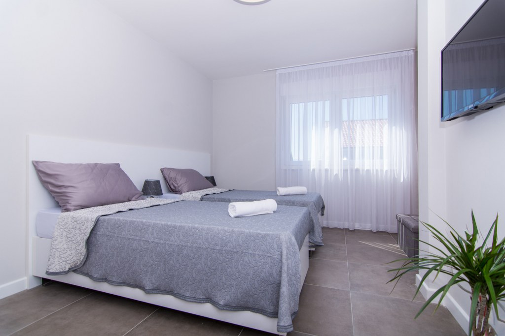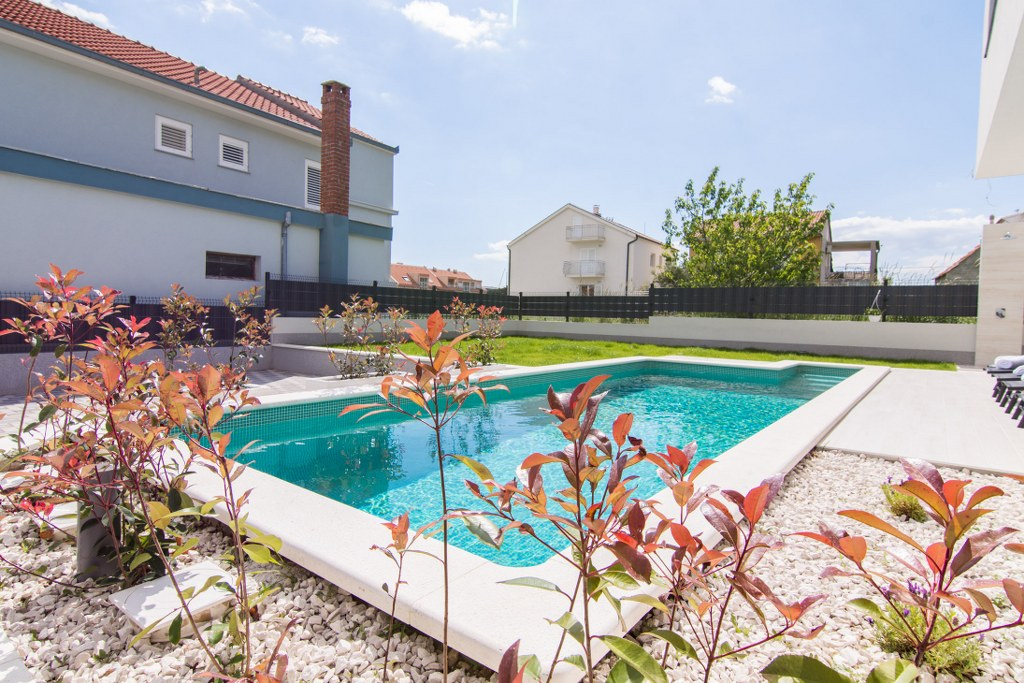 Největším lákadlem je pravděpodobně prostorný bazén na terase v přízemí, který je ideálním místem pro setkávání s přáteli a rodinou. Kromě krásně řešené terasy, která harmonicky spojuje vnitřní a venkovní prostory, nabízí tato jídelna dokonalou kombinaci relaxace, panoramatického výhledu, kulinářských požitků a příjemných hodin strávených s rodinou a přáteli. V zadní části zahrady, zasazené do malého zahradního zákoutí, zve k posezení kamenný gril. Minimalistický design zahrady nabízí jen málo prostoru pro rostliny a zvířata, přesto však vytváří barevné akcenty v jinak jednoduchém a elegantním uspořádání. Pláž a centrum města jsou v pěší vzdálenosti, takže do historického starého města Kašteli se dostanete za pár minut. Tato nemovitost zaujme svou snovou polohou a okouzlí vás. Čerstvý vzduch, průzračná voda a pestrá krajina vytvářejí harmonickou a uvolněnou atmosféru.