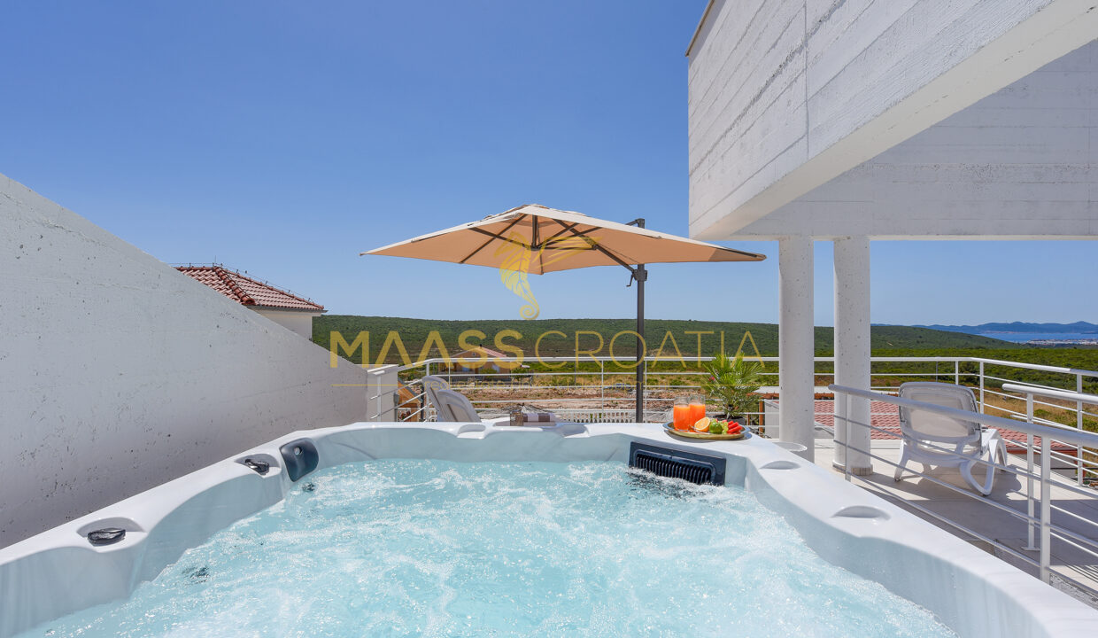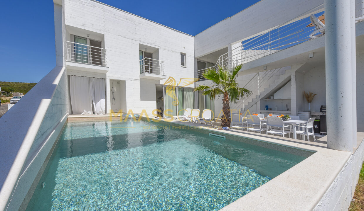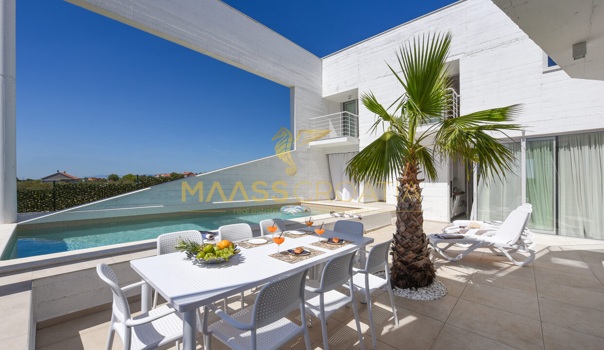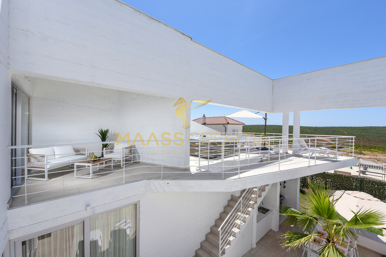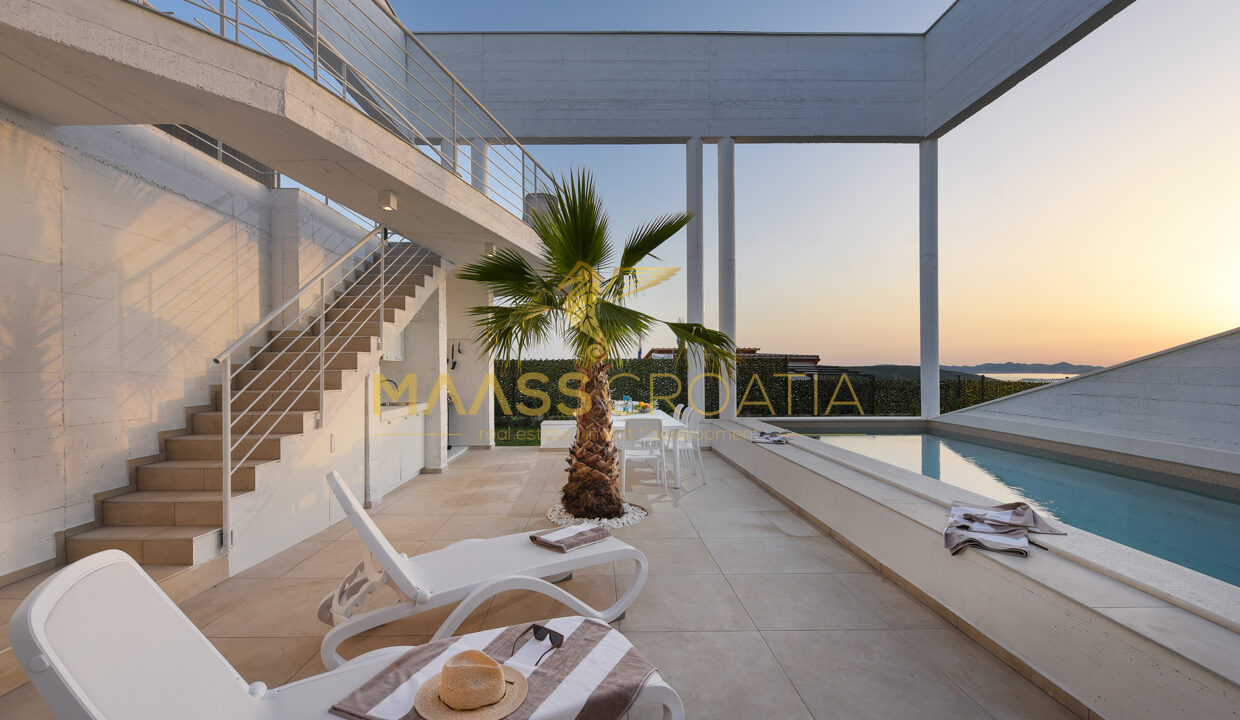 Tato jedinečná moderní luxusní vila se nachází v klidné vesničce Debeljak nedaleko Zadaru.