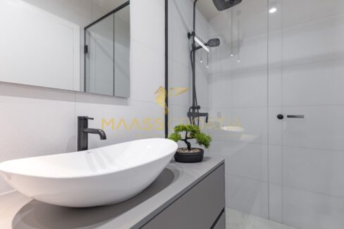 Byt má obytnou plochu přibližně 95 m² a skládá se ze vstupní části, předsíně, otevřené kuchyně s jídelním koutem a prostorného obývacího pokoje s přímým vstupem na krytou terasu a společný bazén.