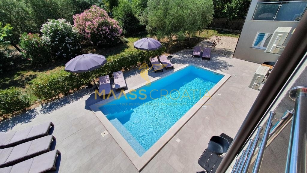 Pouhých 650 metrů od krásných pláží a křišťálově čistého moře je na prodej moderní vila s bazénem o celkové rozloze 295 m², která se nachází na pozemku o rozloze 800 m².