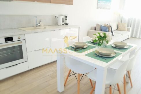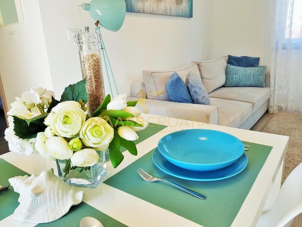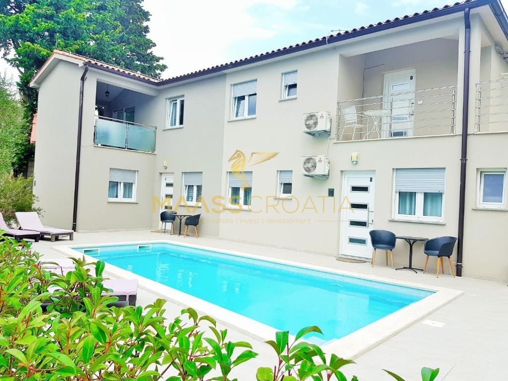 Byty v přízemí mají přímý přístup k bazénu, sluneční terase a upravené zahradě, zatímco horní byty mají prostorné terasy.