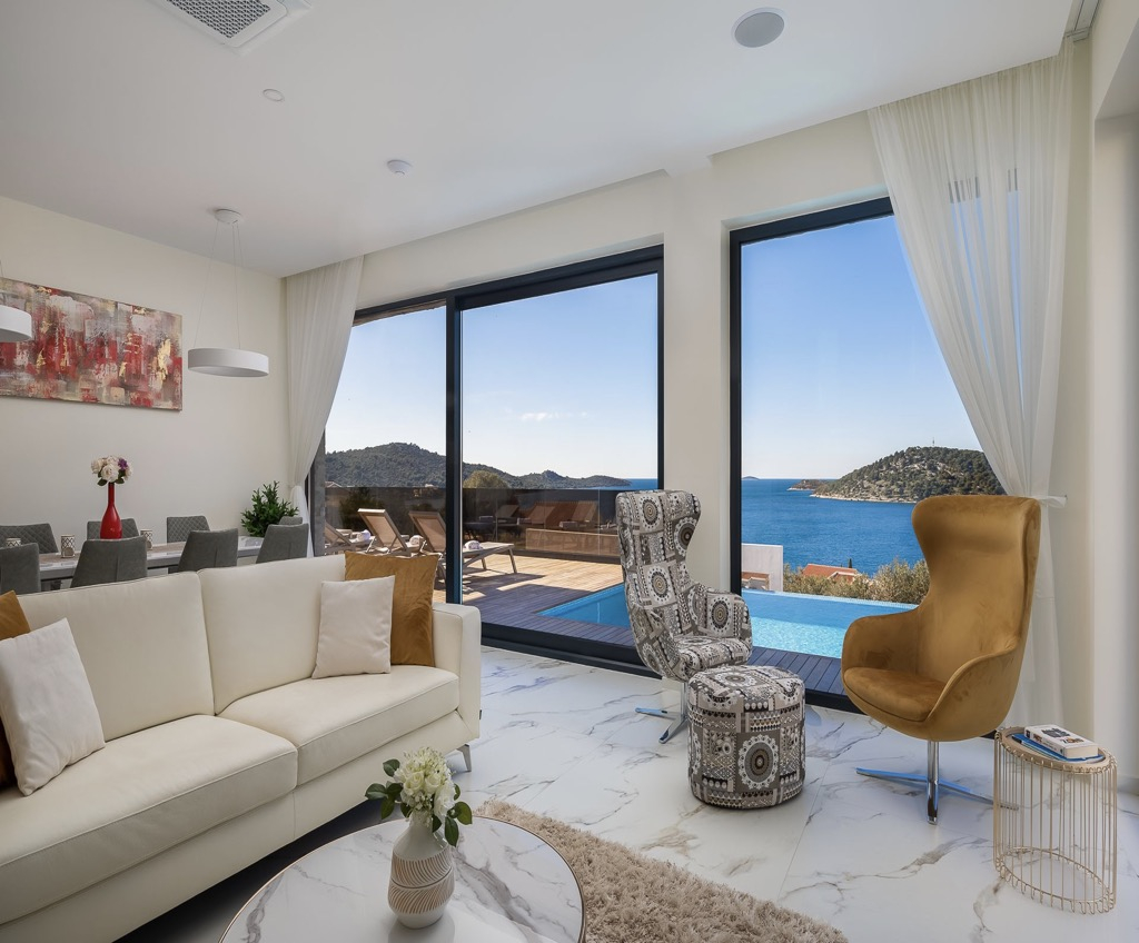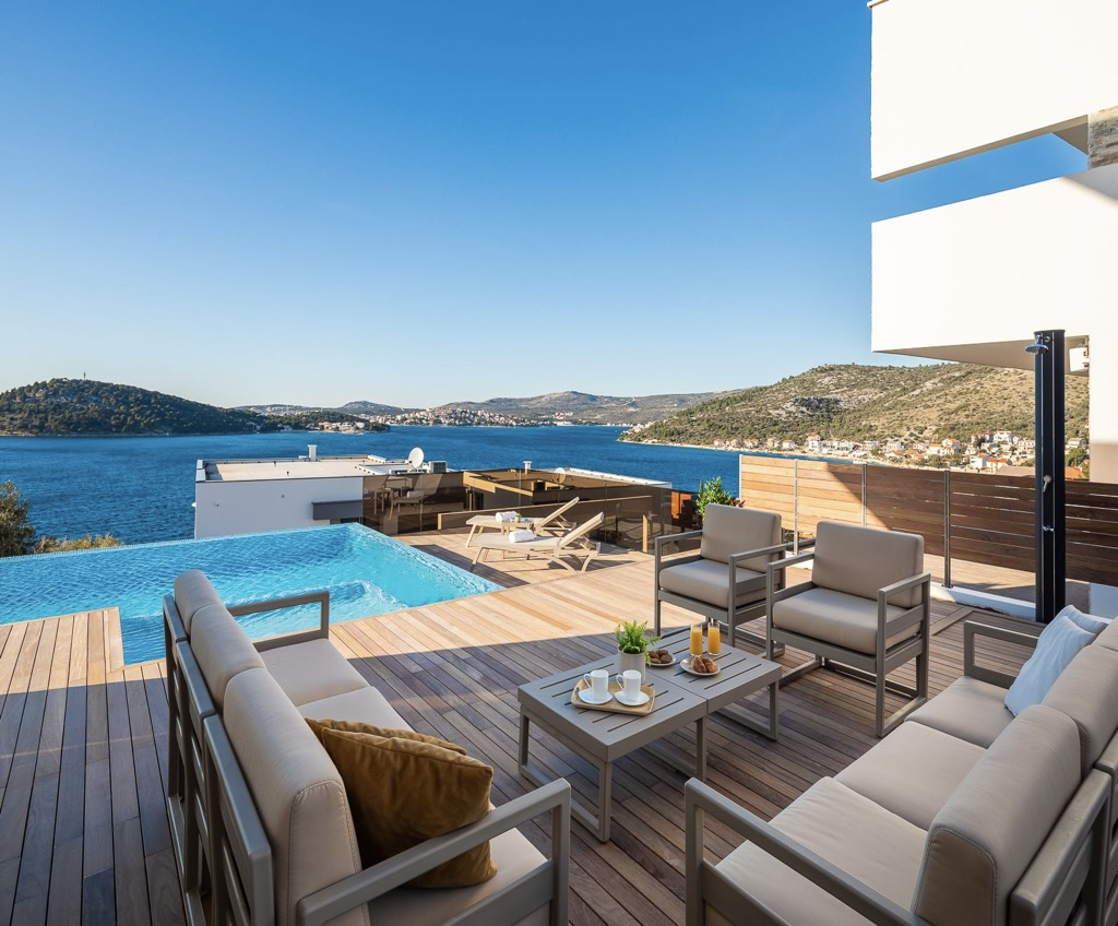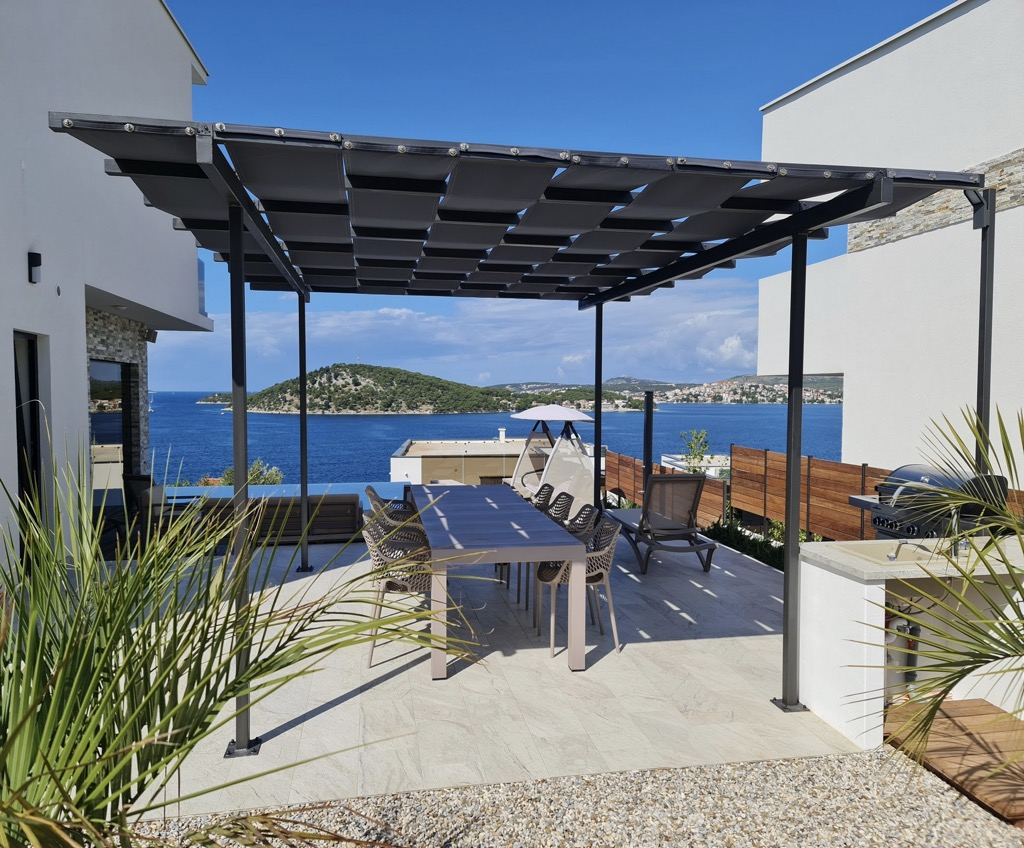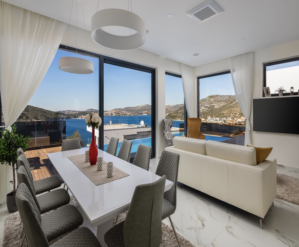 Díky svému elegantnímu, modernímu designu, výhodné poloze a bohatému luxusnímu vybavení tato vila s výhledem na moře v Rogoznici jistě zanechá trvalý dojem.