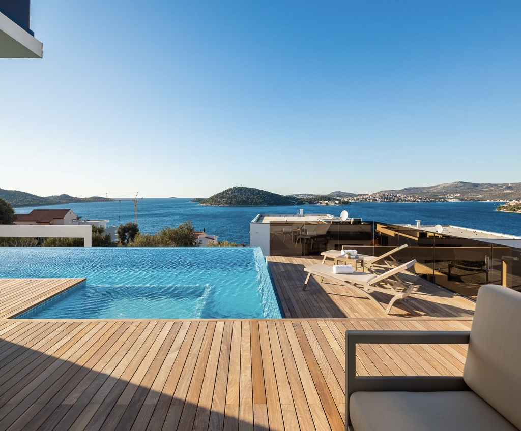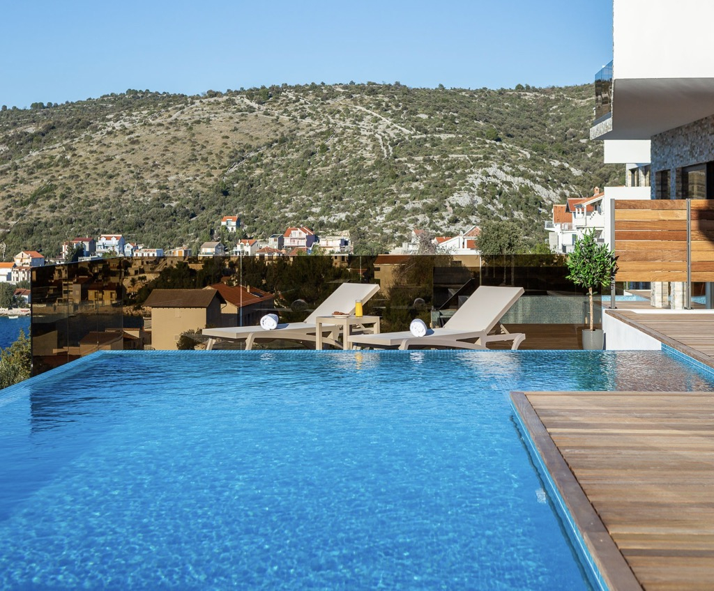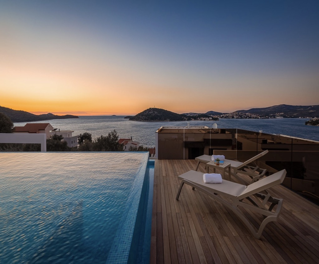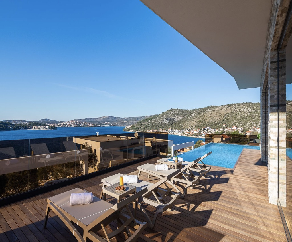 Díky svému elegantnímu, modernímu designu, výhodné poloze a bohatému luxusnímu vybavení tato vila s výhledem na moře v Rogoznici jistě zanechá trvalý dojem.