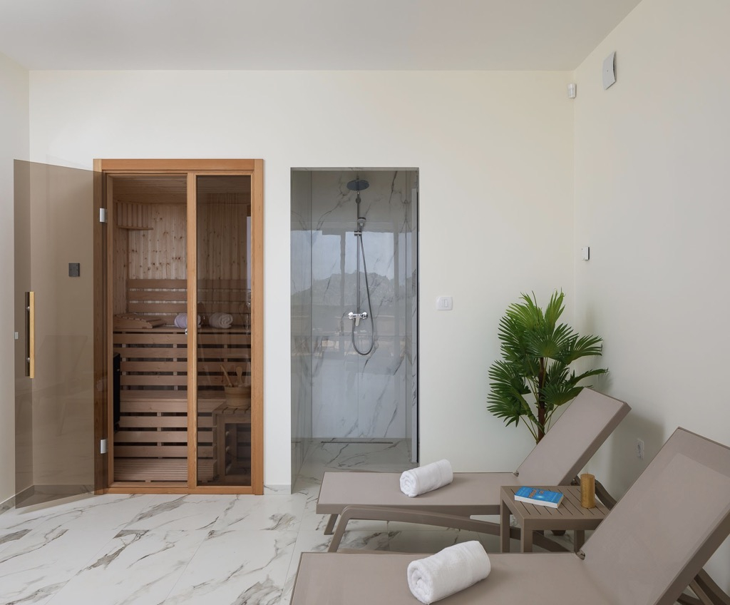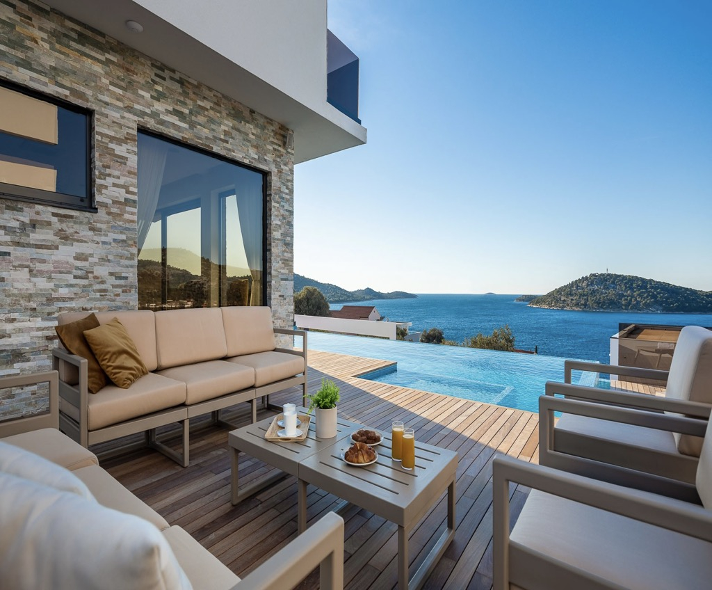Poté, co si dopřejete tento luxus, můžete si na terase a v zahradě vychutnávat čerstvý mořský vzduch a úchvatný výhled na okolní krajinu.