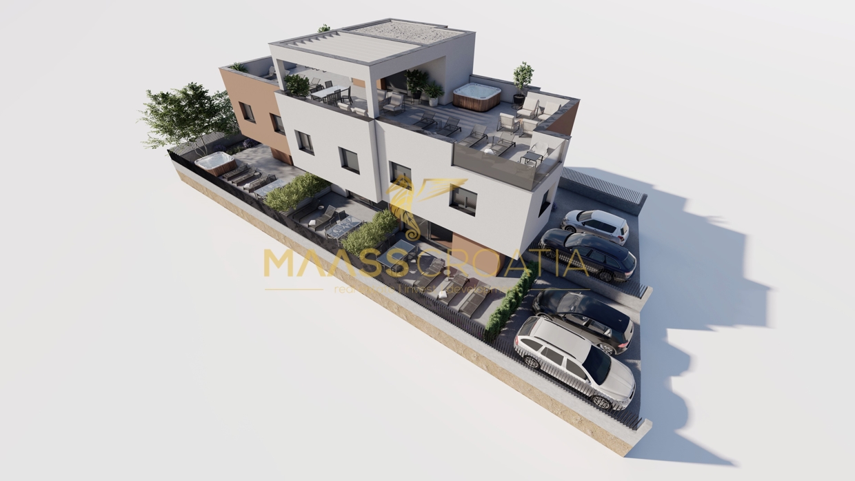 Pronajímaná nemovitost: Velký dvojdomek s 9 bytovými jednotkami v blízkosti moře a střešní terasou s výhledem na moře