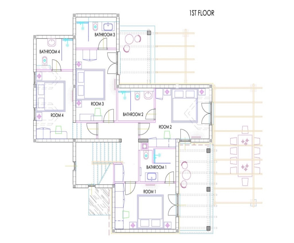 Plně vybavený a zařízený dům má 4 koupelny a 4 ložnice.