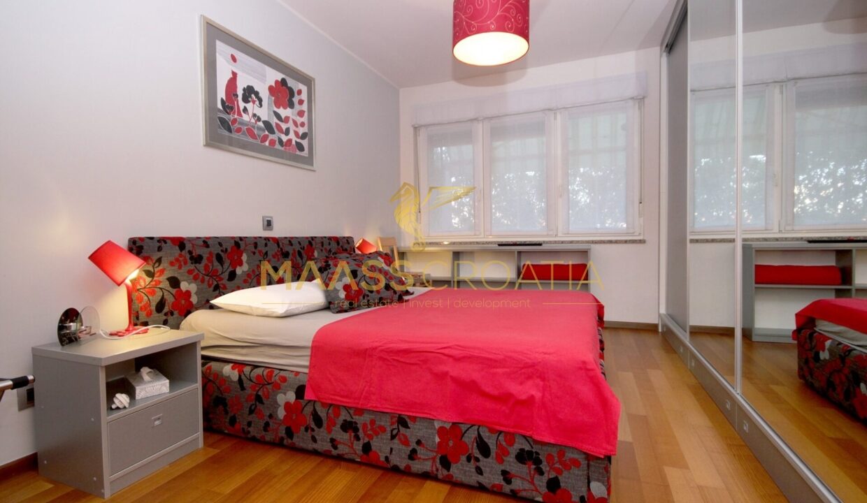 Má dvě ložnice, útulný obývací pokoj a koupelnu. Obzvláště lákavý je balkon, na kterém si můžete užívat teplé večery.