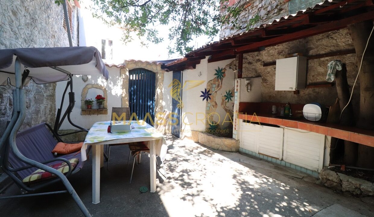 Celý venkovní prostor je upravený a dobře udržovaný, byly zde vysázeny ovocné a olivové stromy, položen trávník, vydlážděny cesty a plocha se zděnými vyvýšenými záhony usnadňuje pěstování zeleniny a hobby zahradničení na zádech.