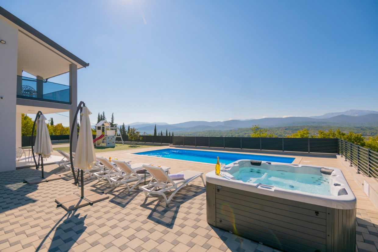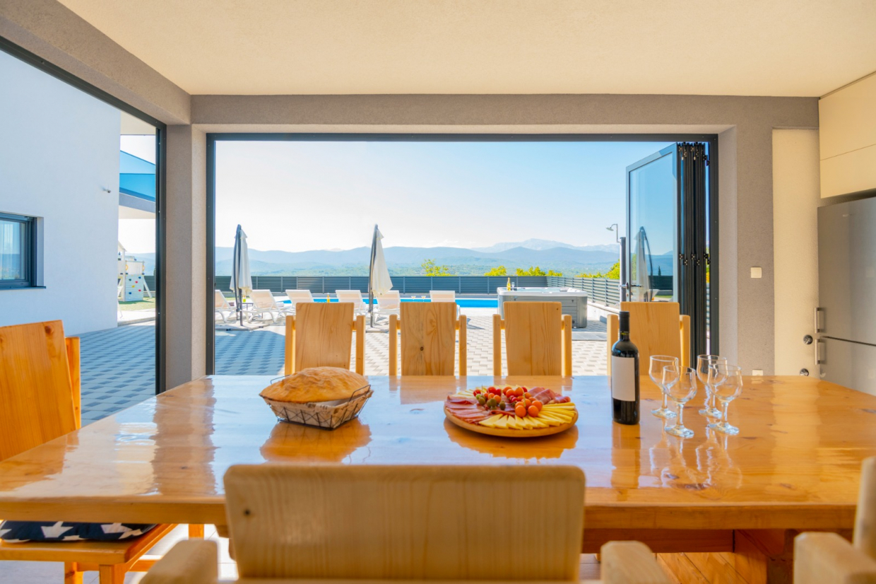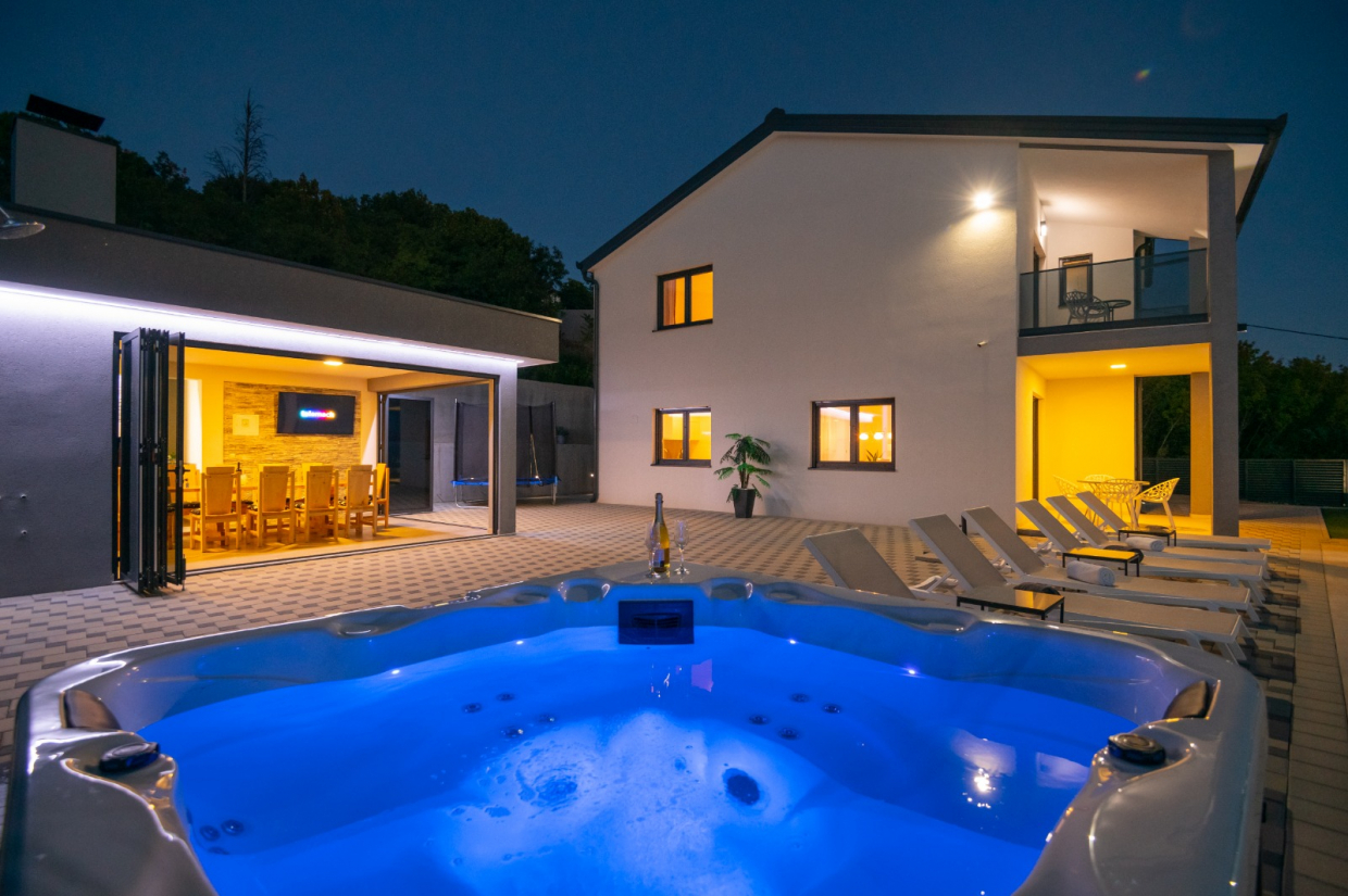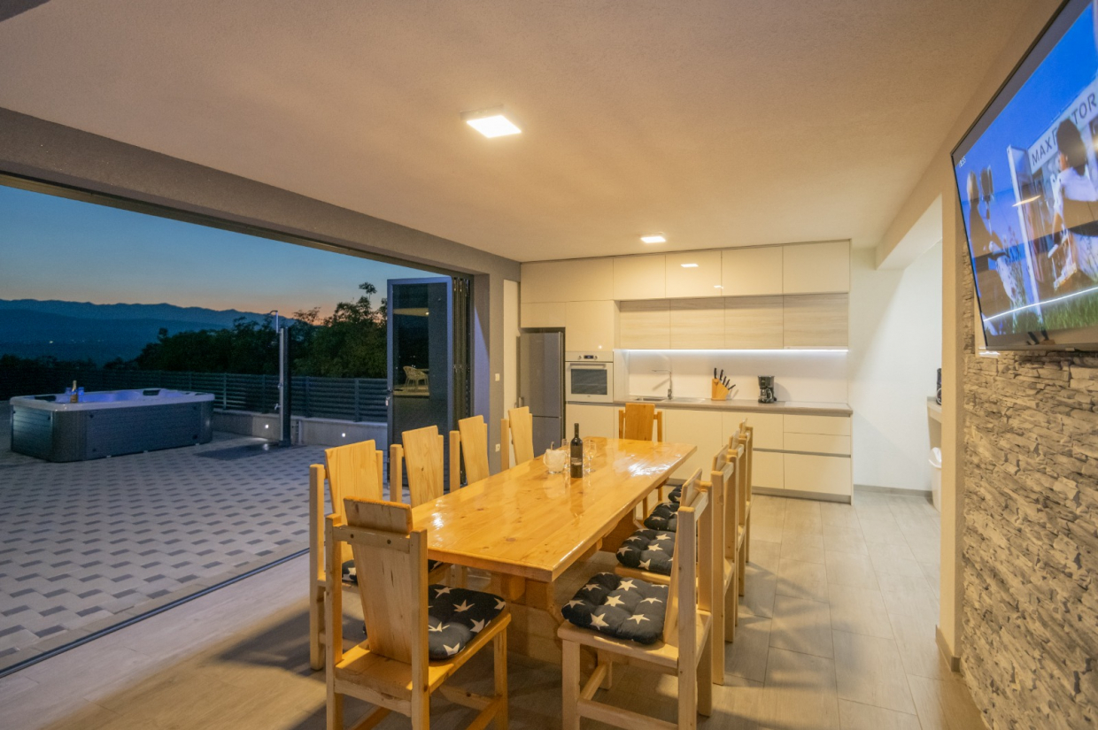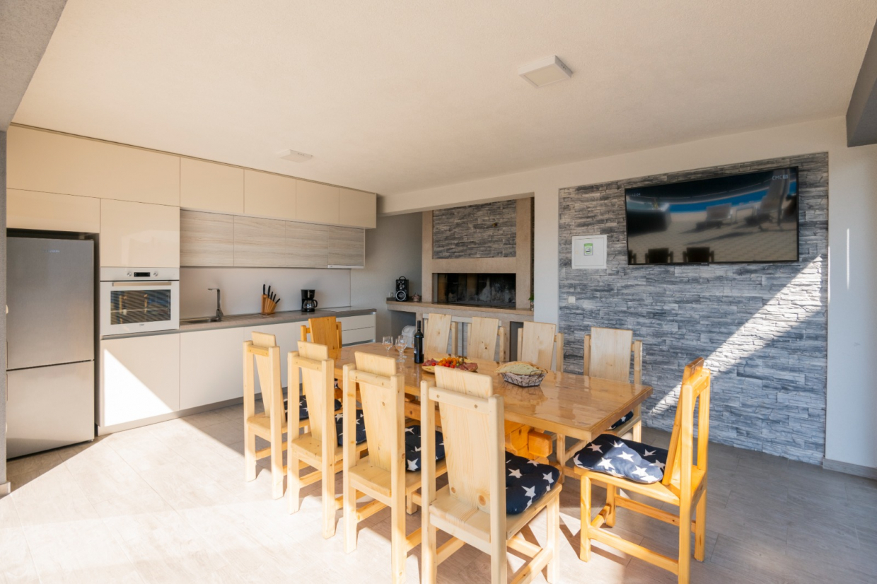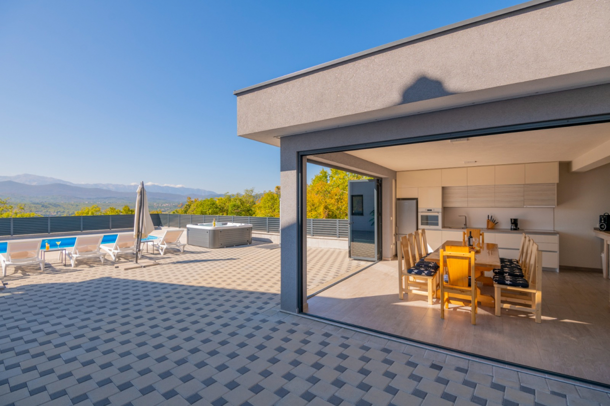 Na terase si můžete užívat vířivku a stolování pod širým nebem s venkovní kuchyní, ideální pro všechna letní setkání s rodinou a přáteli!