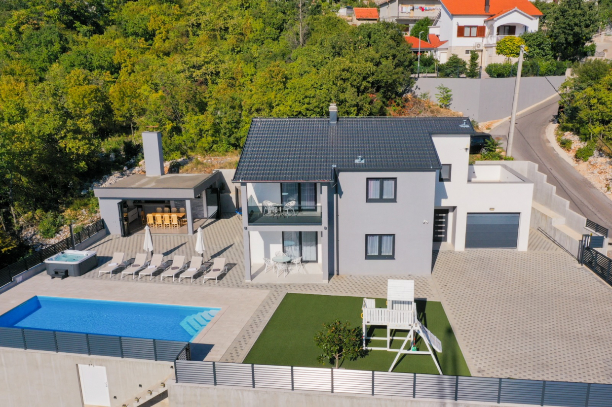 Tato vila o celkové rozloze 294 m2 se nachází nedaleko města a v blízkosti moře na pozemku o rozloze 827 m2.