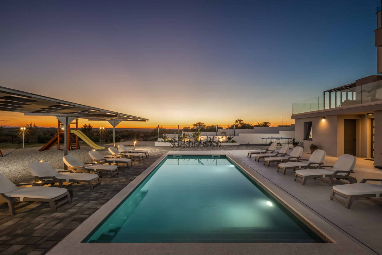 Po dni stráveném poznáváním Zadaru a okolí můžete relaxovat v bazénu o rozloze 45 metrů čtverečních nebo si zacvičit v domácí posilovně. Sauna je ideálním místem pro relaxaci a omlazení, zatímco podlahové vytápění a klimatizace vám zajistí pohodlí po celý rok.