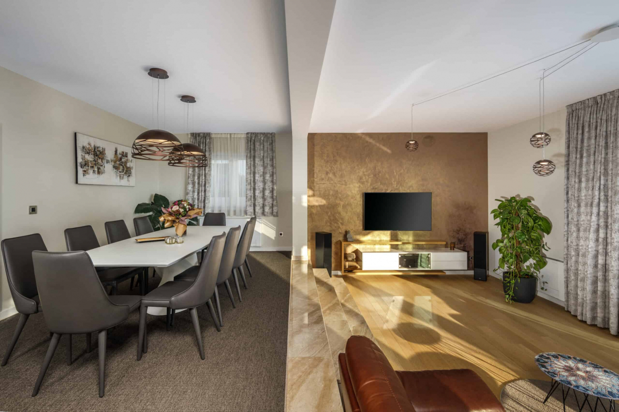 S obytnou plochou 400 m2 a pozemkem o velikosti 3300 m2 nabízí tento dům dostatek prostoru pro relaxaci a odpočinek pro vás i vaše hosty. Objekt má šest ložnic a osm koupelen, takže každý má svůj vlastní prostor a soukromí.