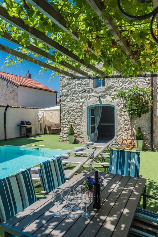 Bílý kamenný klenot s bazénem a panoramatickým výhledem na moře v Novalji