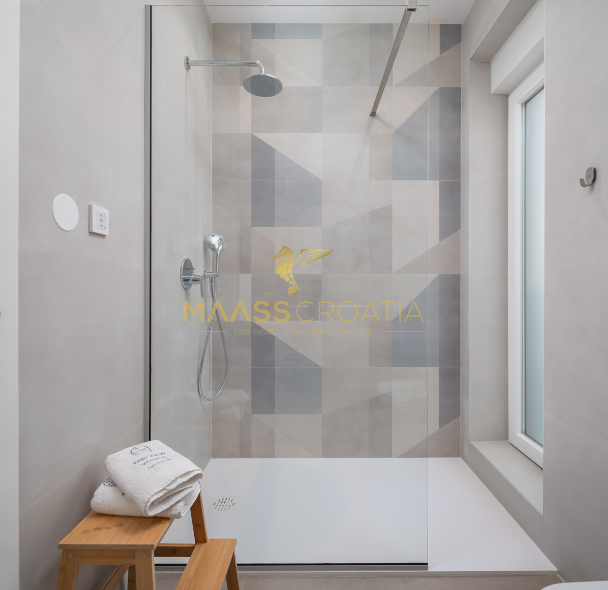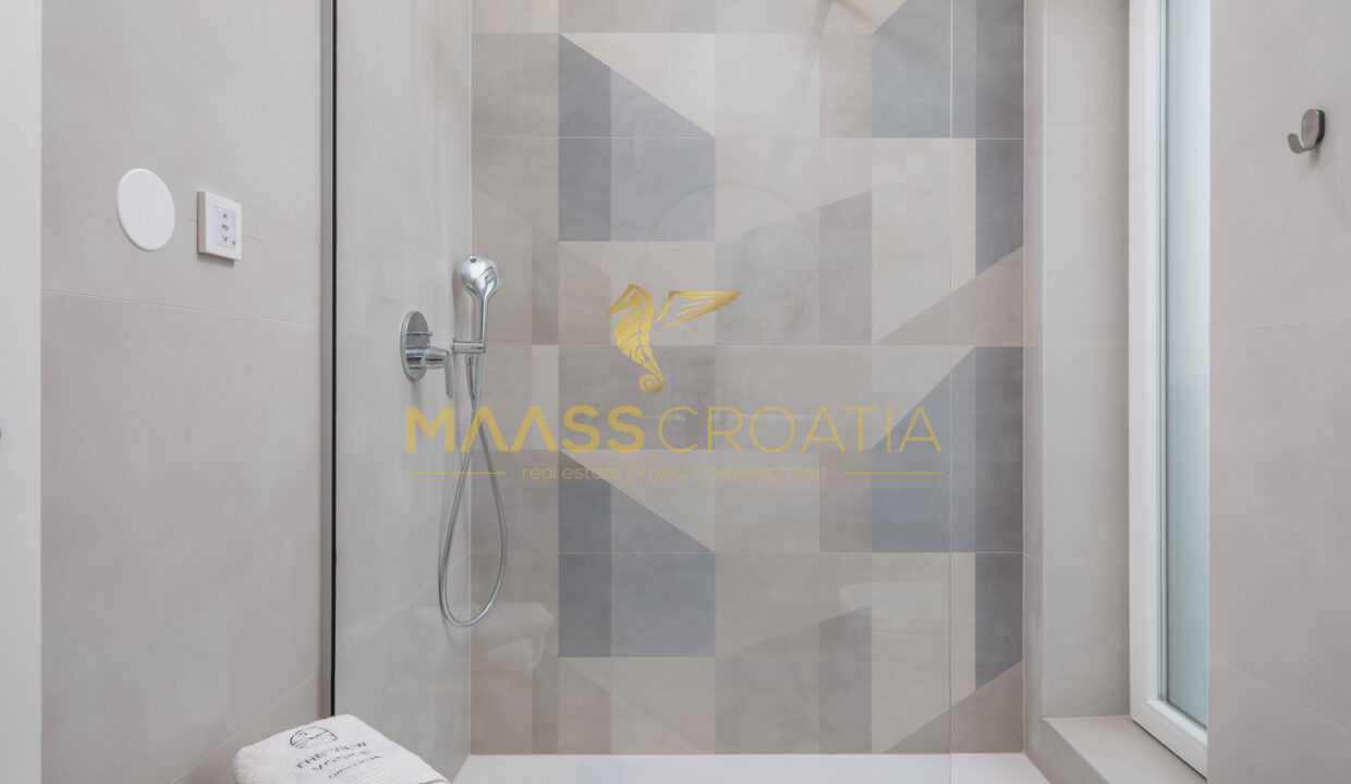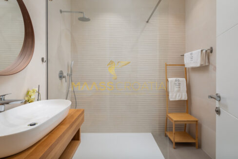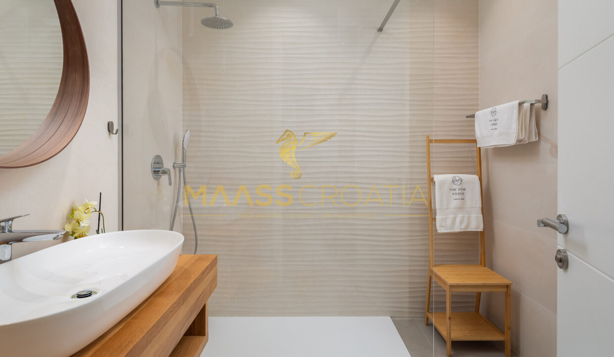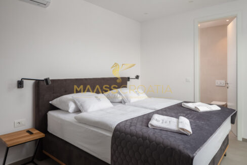 Vnitřní schodiště vede do 1. patra, které tvoří 3 ložnice, každá s vlastní koupelnou, z nichž hlavní ložnice má přístup na velkou terasu s výhledem na moře.