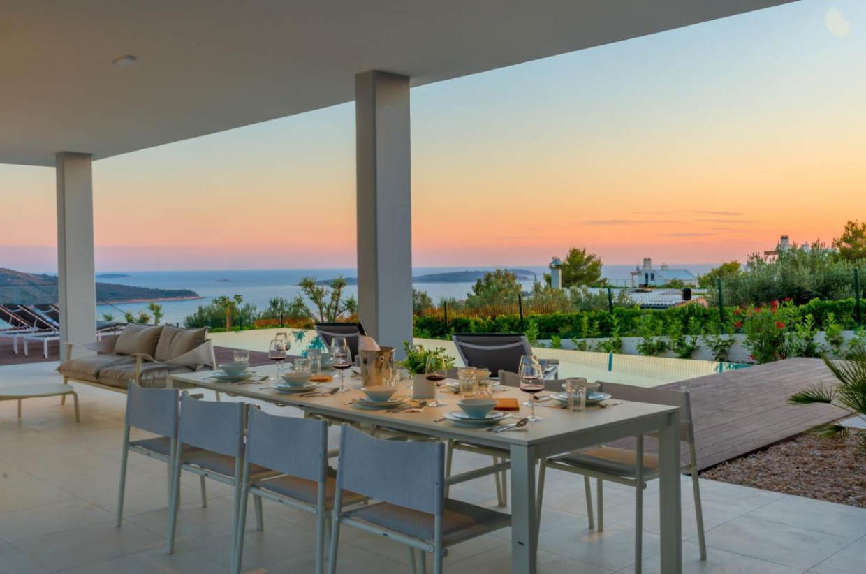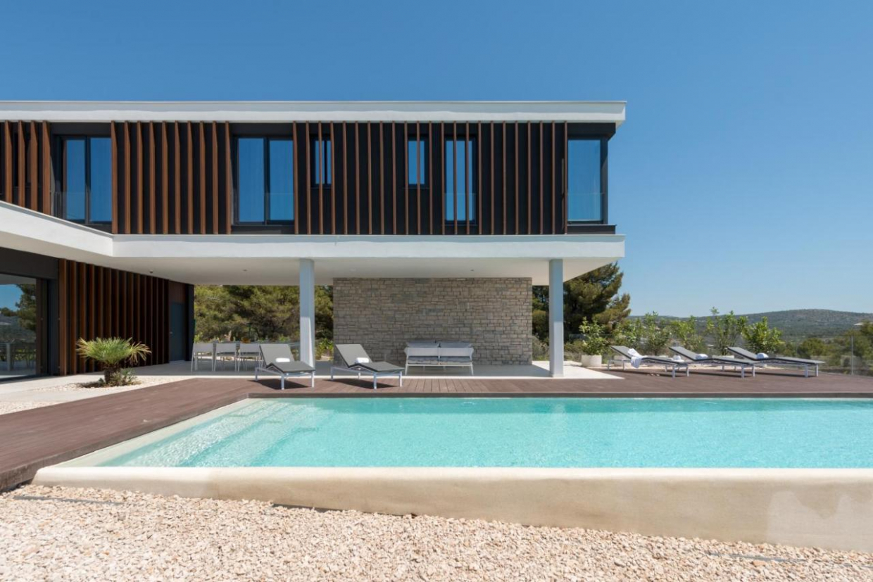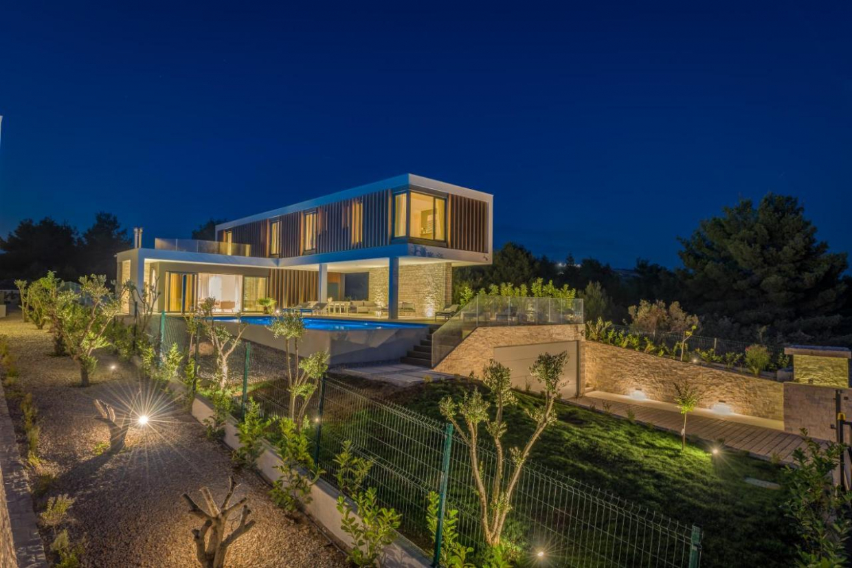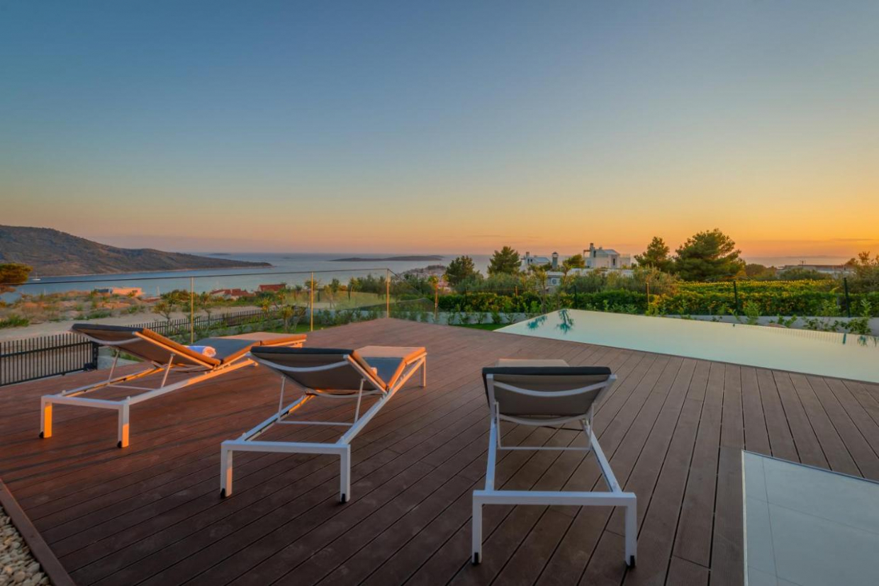 Velká vila se třemi apartmány a výhledem na moře, bazénem a zahradou