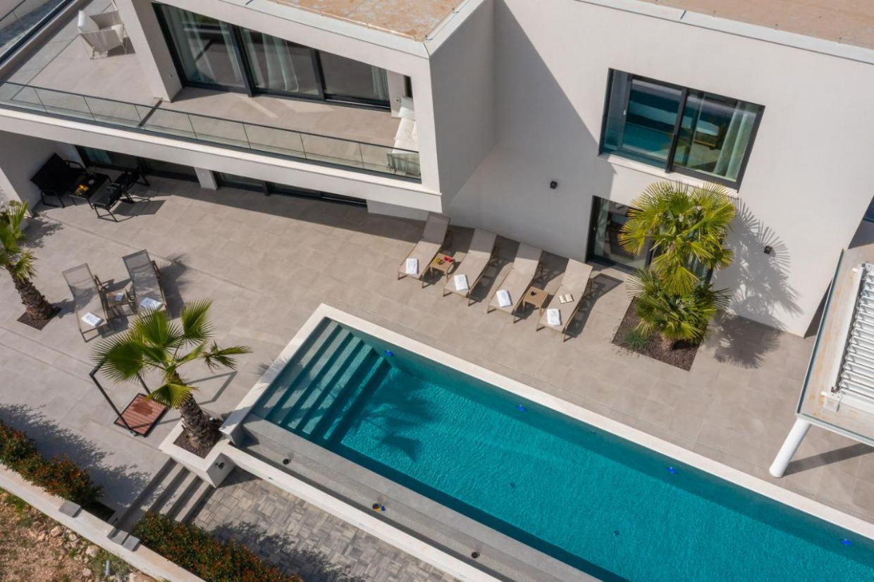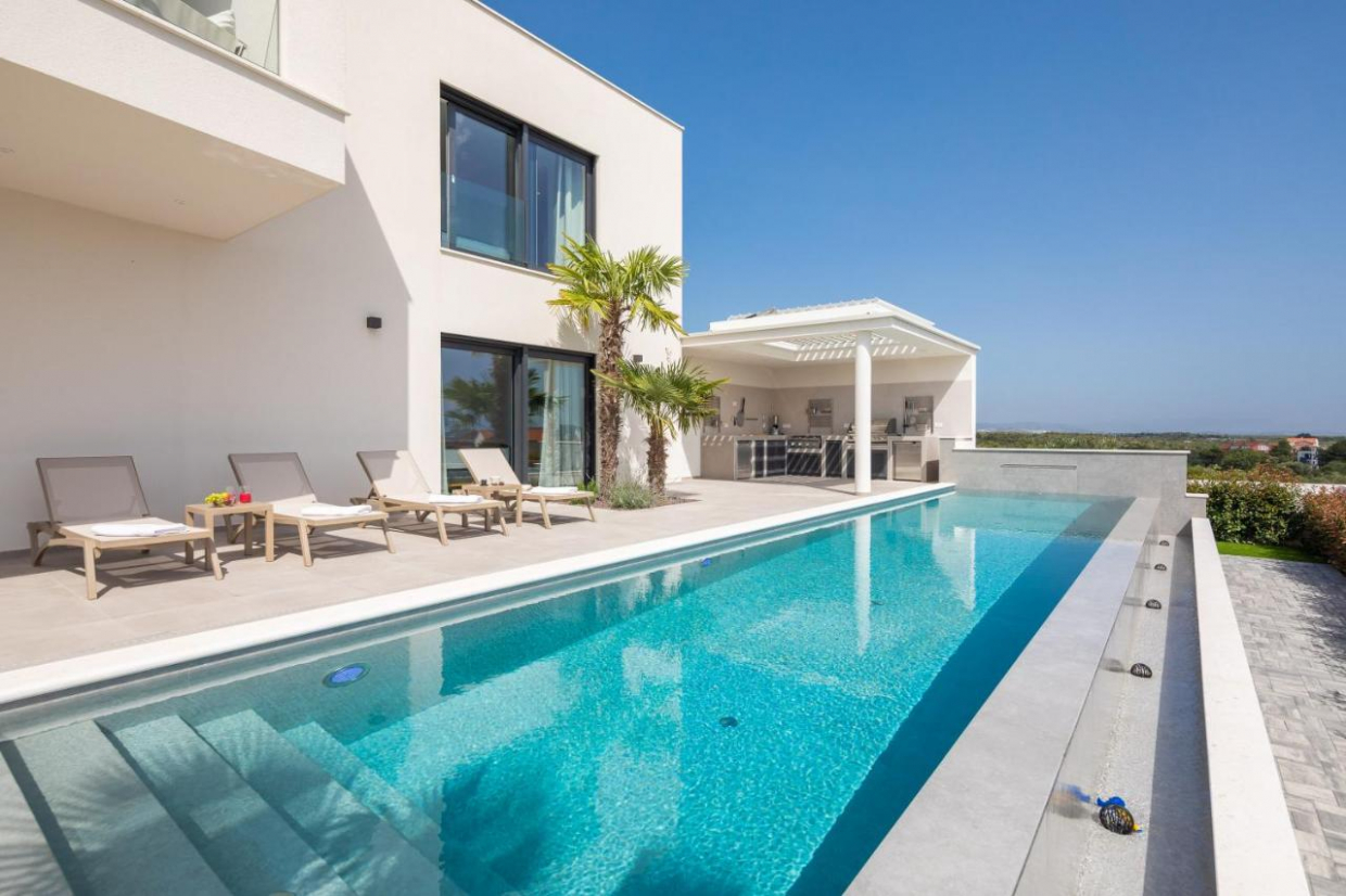 Nová, moderní vila s bazénem Tento nový jednopatrový dům s bazénem se nachází v Pule, největším městě...