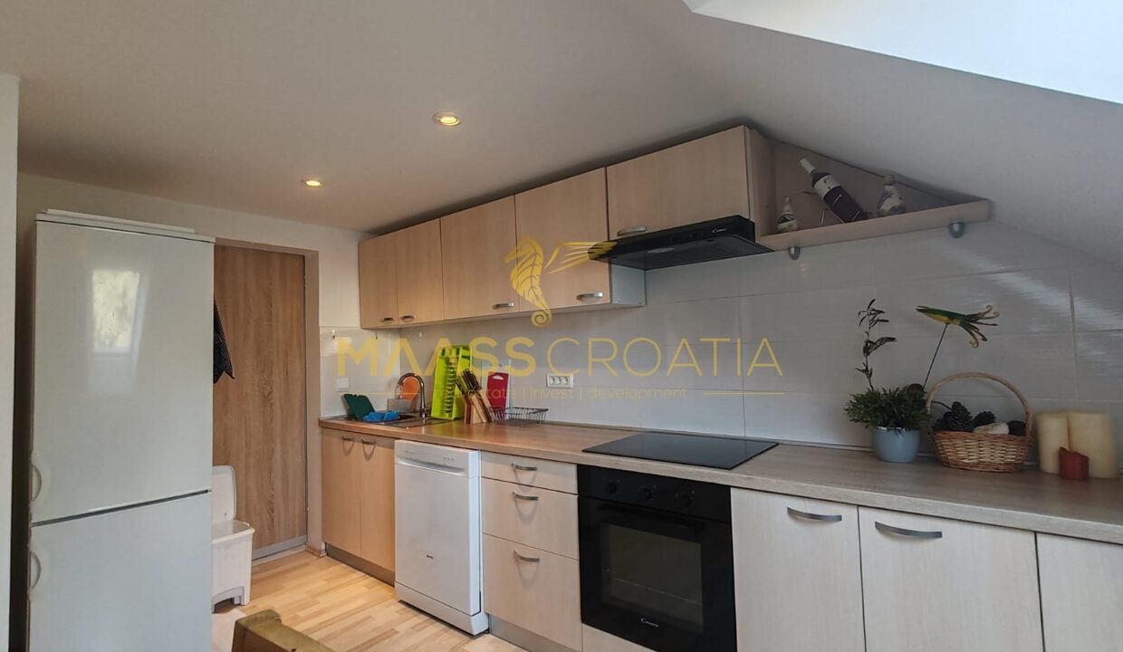 Byt se nachází v nejvyšším patře dvoupatrové budovy a prodává se zařízený.