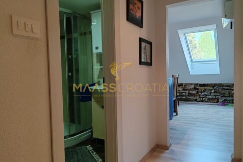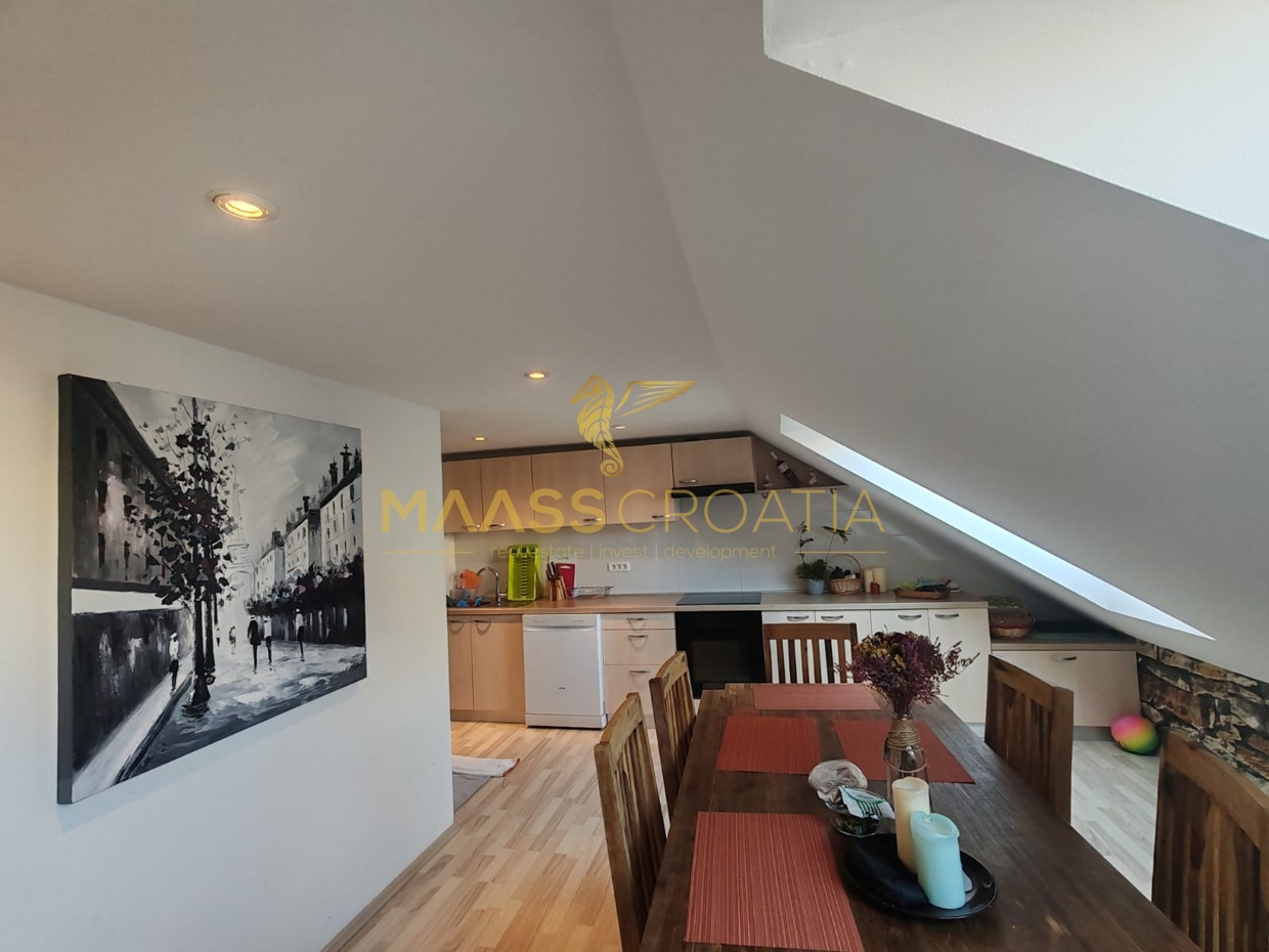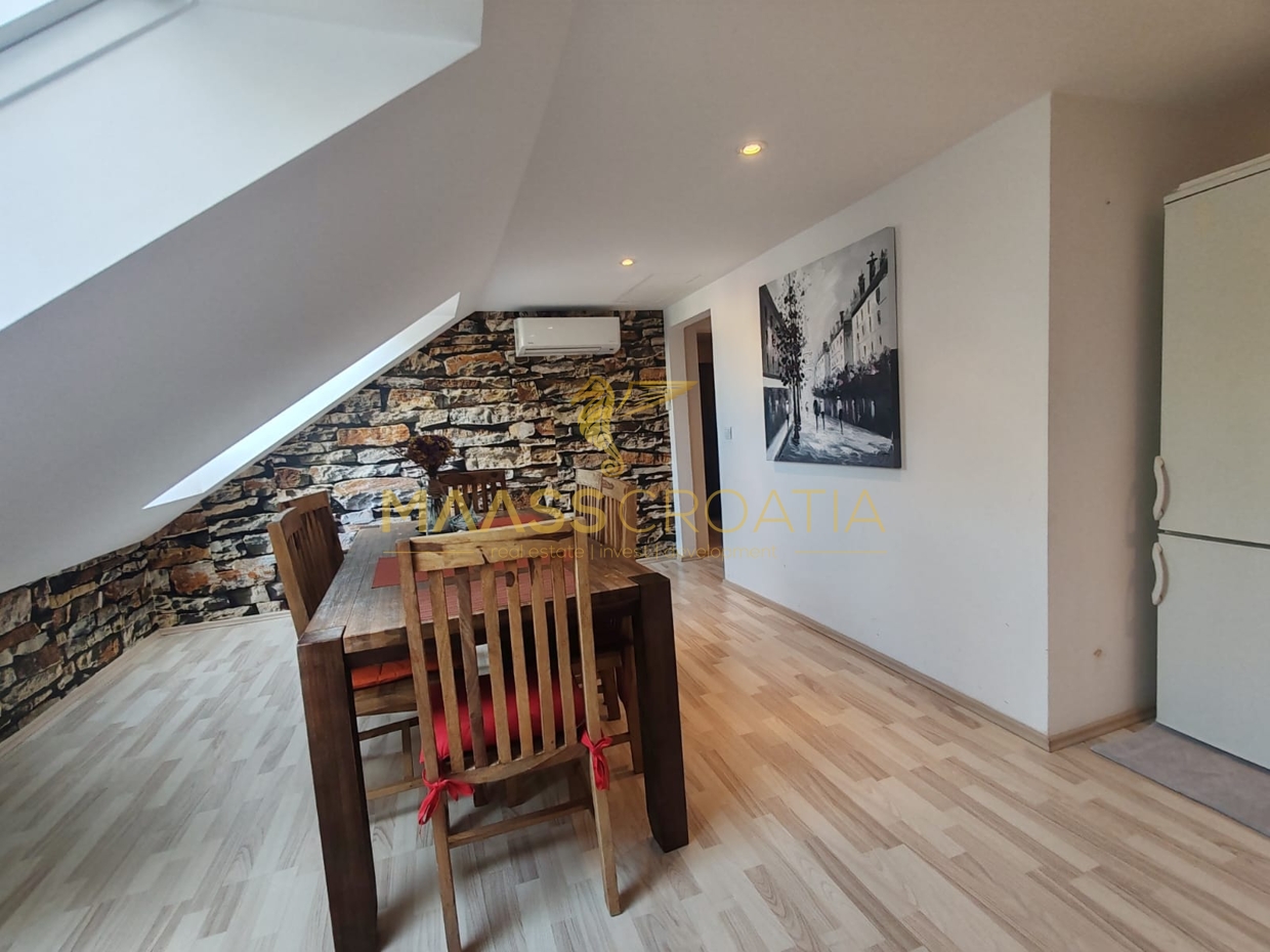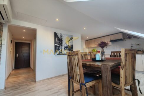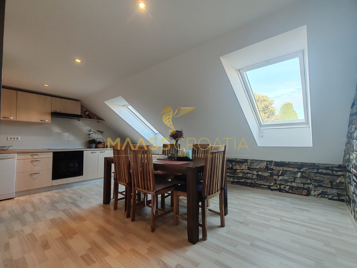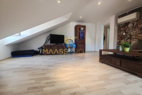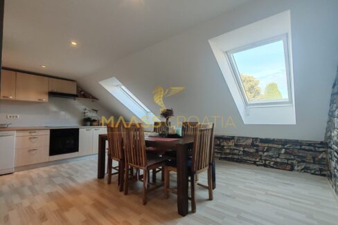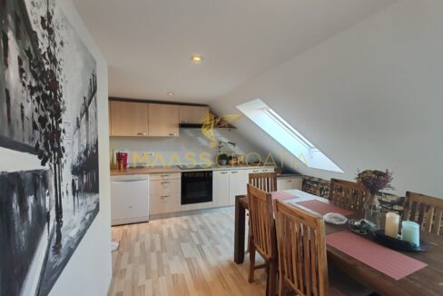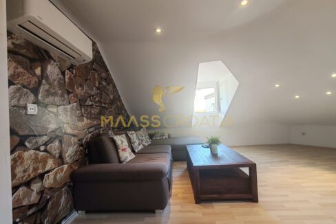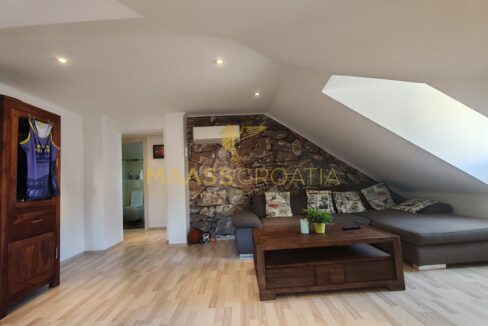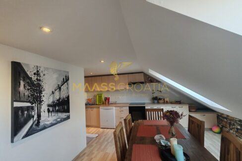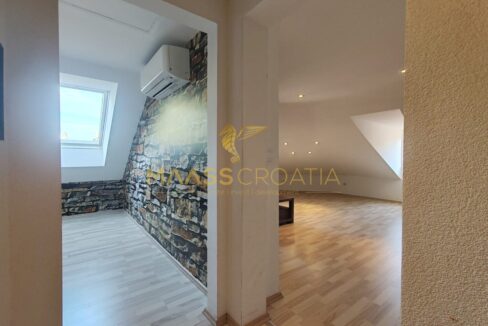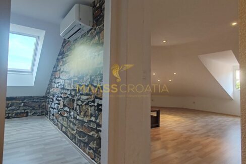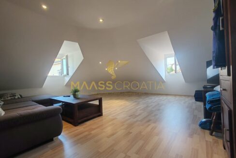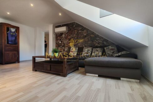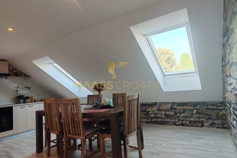 Skládá se z ložnice, prostorného obývacího pokoje, kuchyně s jídelním koutem, koupelny a komory. Je vybaven střešními okny Velux s dálkovým ovládáním, klimatizací a laminátovou podlahou v celém bytě.