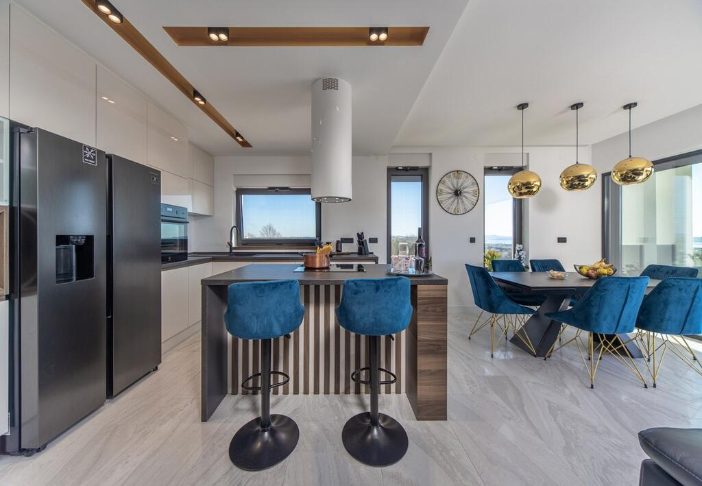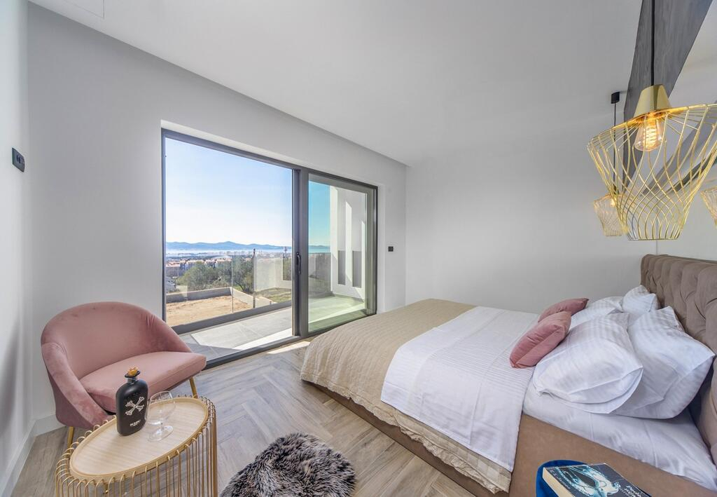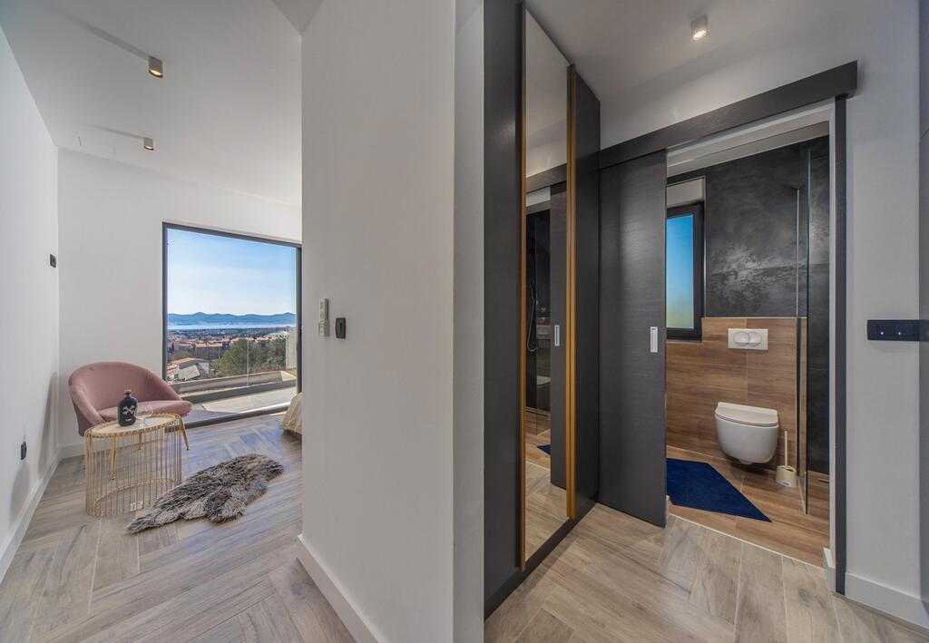 Přijďte se podívat na tento fascinující kousek současné architektury! Tato nemovitost o rozloze 210 m2 stojí na svěžím pozemku o rozloze 1000 m2 a nabízí výhled na Zadarský záliv a jeho úžasné okolí.