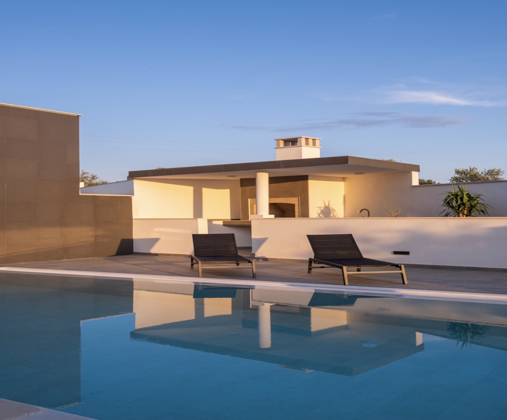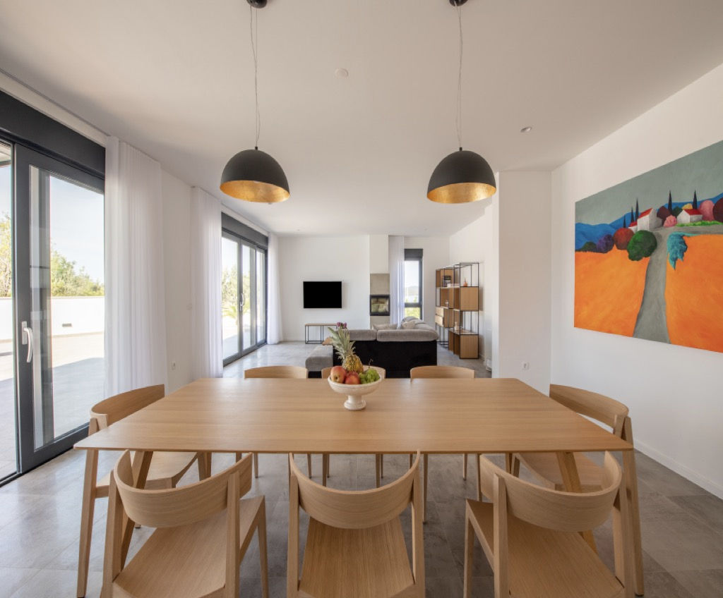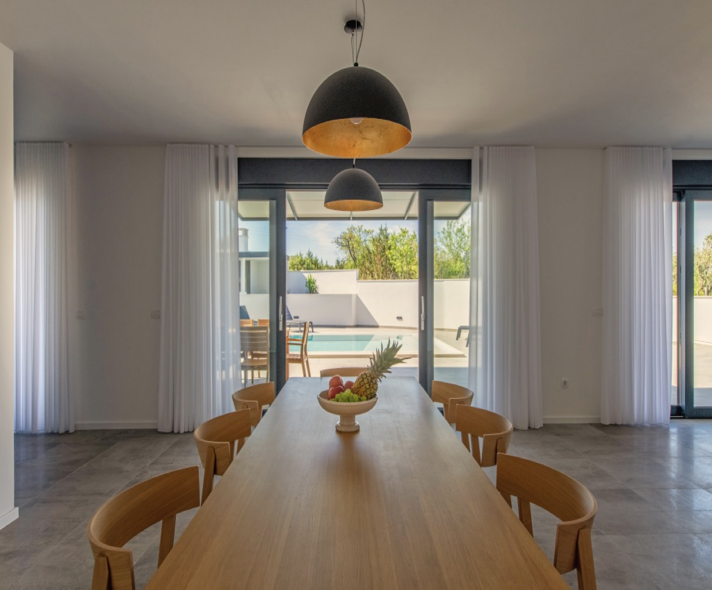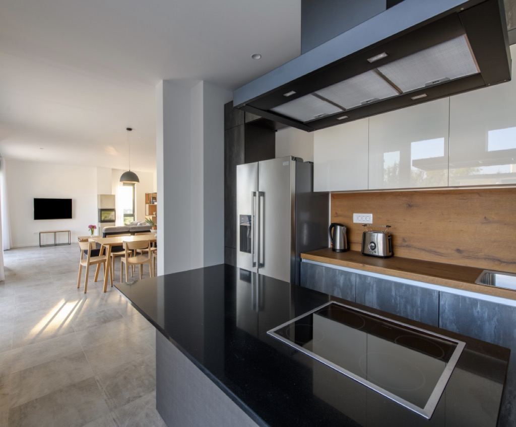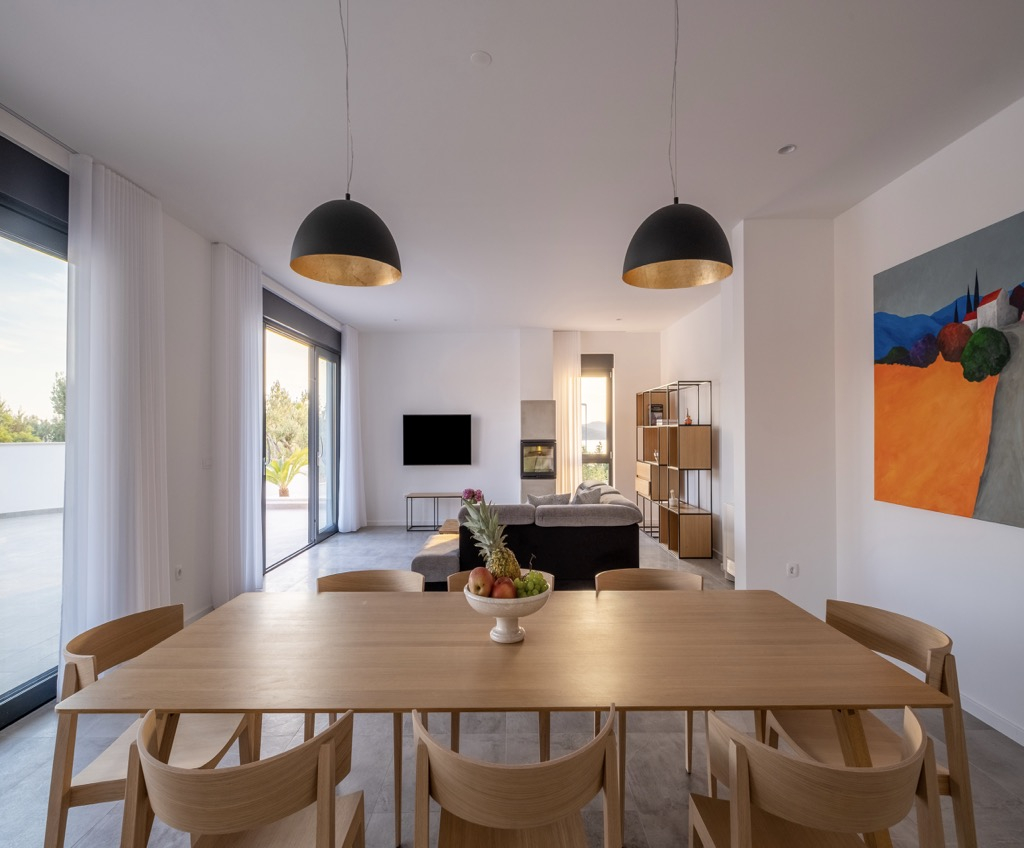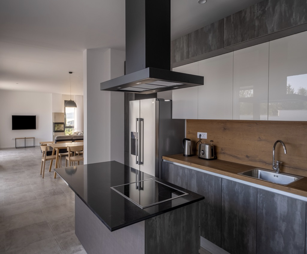 Elegantní a minimalistické povrchové úpravy doplněné moderními spotřebiči uvnitř i venku dodávají domu umělecký vzhled a zároveň vysokou funkčnost. Posunují celý dům na jinou úroveň a dodávají mu elegantní a luxusní dojem.