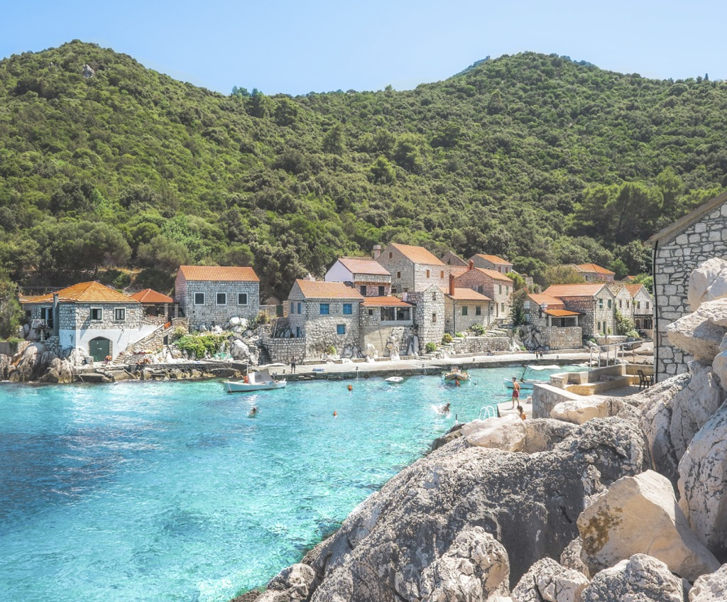 Tato impozantní, ručně postavená kamenná vila z 19. století se nachází na samém jihu chorvatského pobřeží.