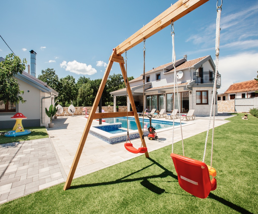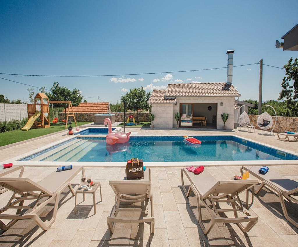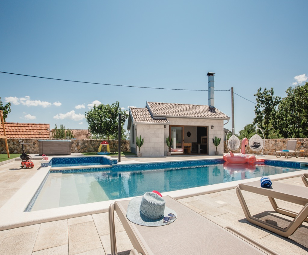 Kromě tohoto již tak úžasného domu je vedle bazénu další zahradní domek, který můžete využívat pro zábavné letní večery a zábavu.