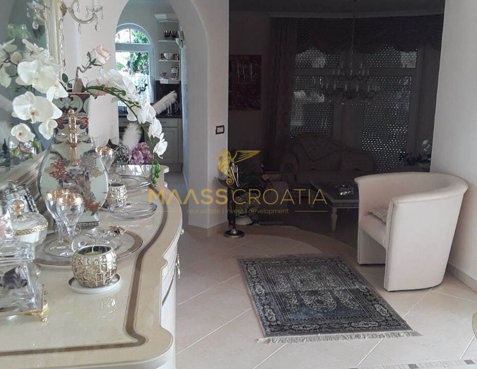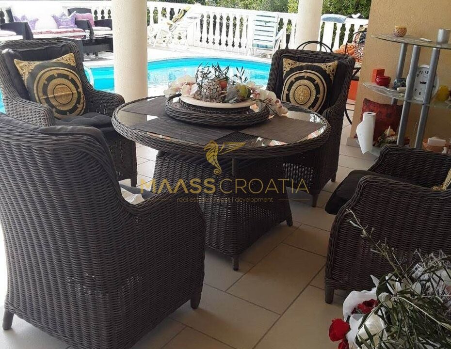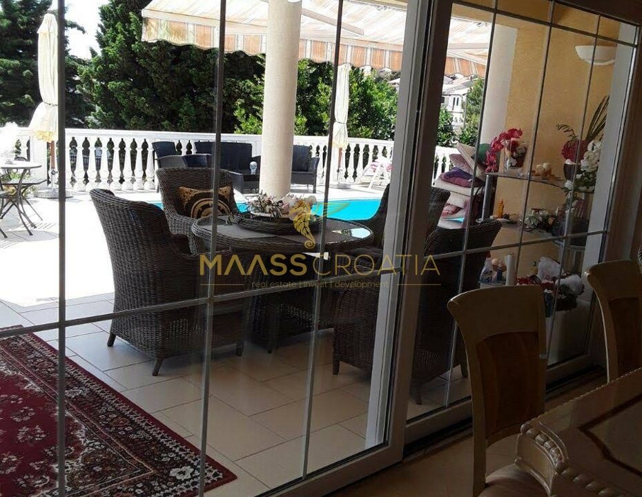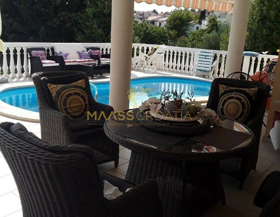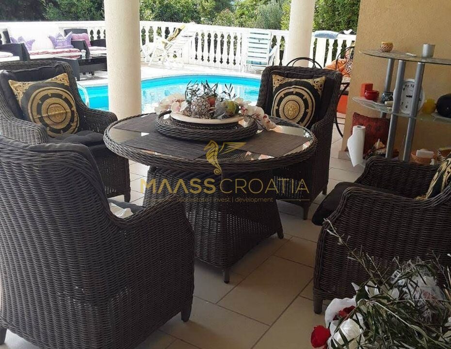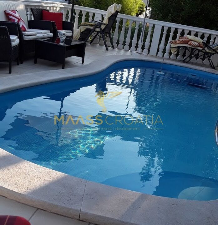 V klidné lokalitě, přesto v blízkosti veškeré občanské vybavenosti, se nachází krásný apartmánový dům s bazénem a výhledem na moře na pozemku 810 m2.