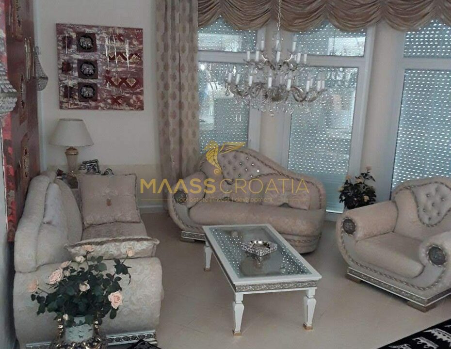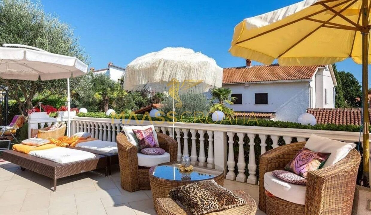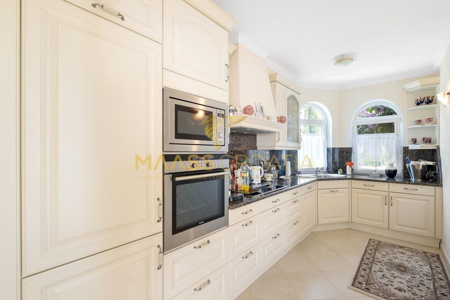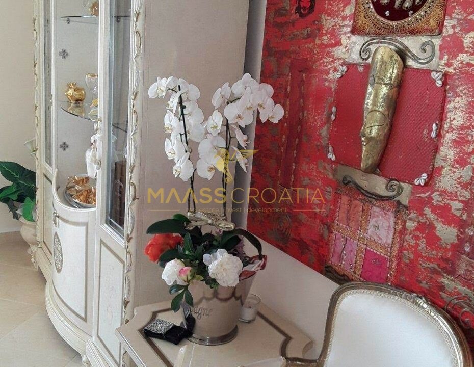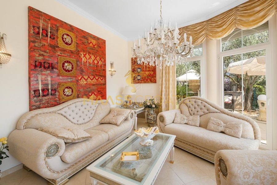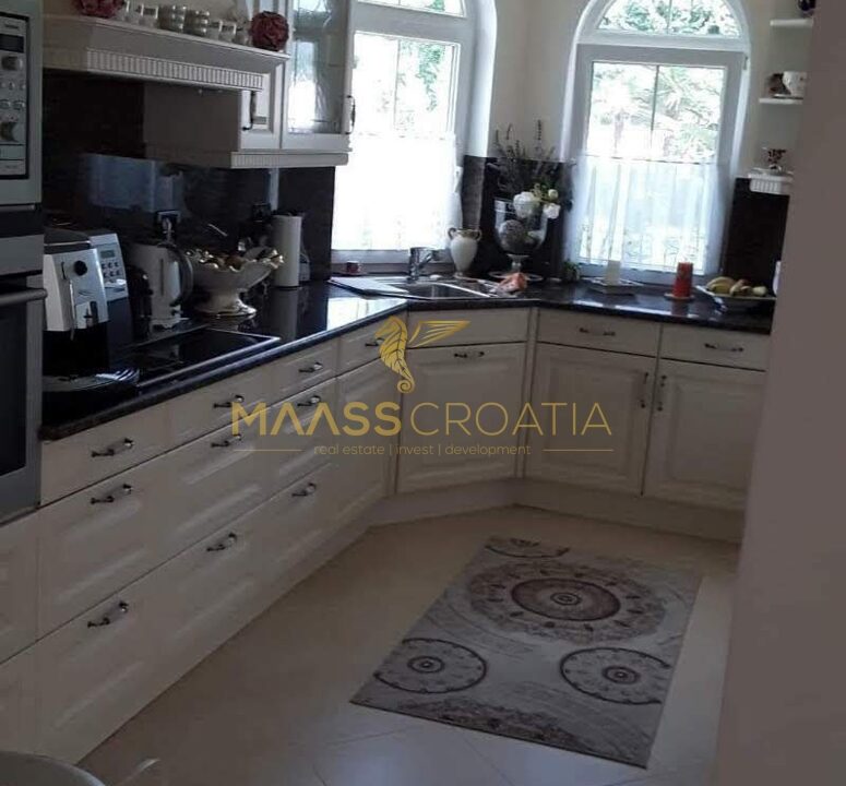 V klidné lokalitě, přesto v blízkosti veškeré občanské vybavenosti, se nachází krásný apartmánový dům s bazénem a výhledem na moře na pozemku 810 m2.