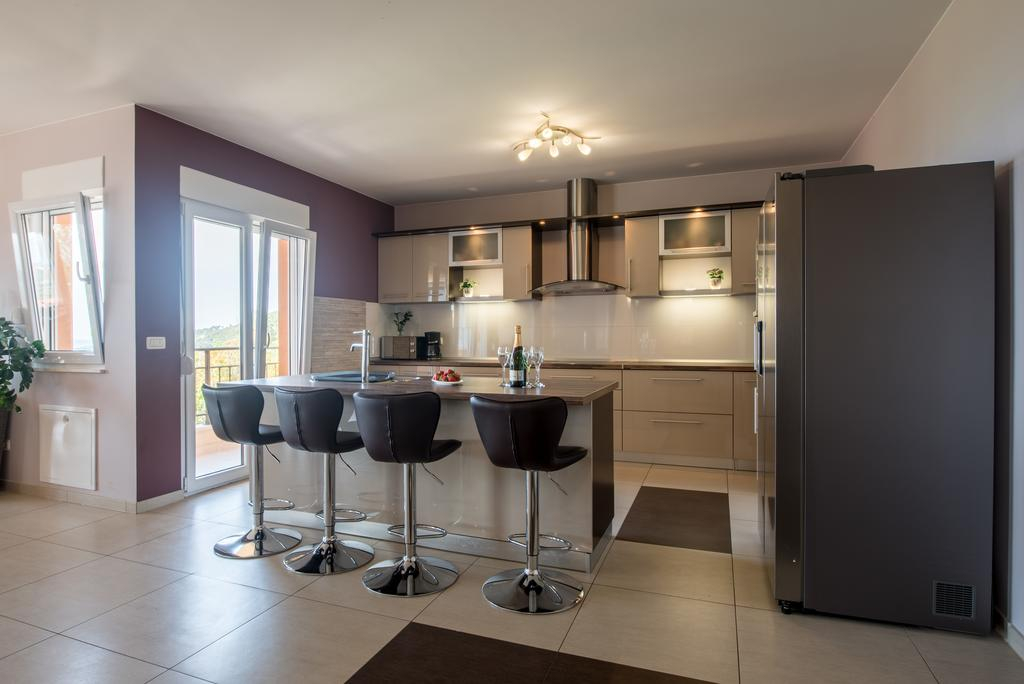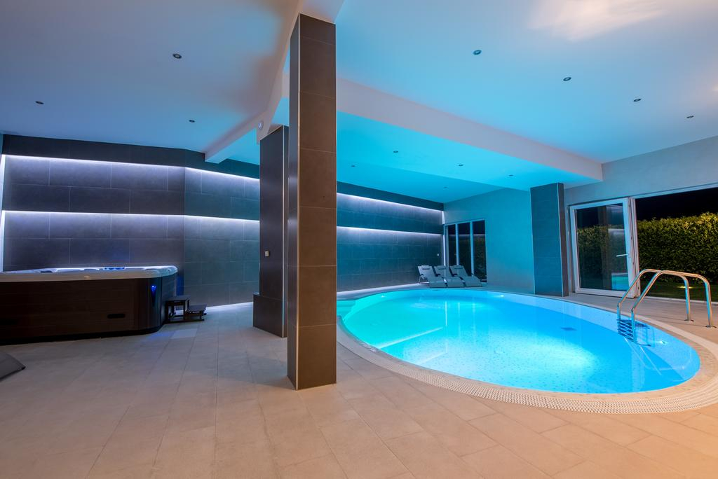 Tento třípodlažní dům s velkou zahradou a prostorným parkovištěm splní všechna vaše očekávání. Má 5 ložnic a 7 koupelen a nachází se 10 km od centra města a 7 km od první pláže. Na hlavní terase v přízemí se nachází velký bazén, na který navazuje terasa se zastřešenou pergolou a kamenným grilem. Skutečný středobod zábavy. Bazén se nachází v zadní části domu. Nádherný výhled na moře je vidět z přední zahrady, ze dvou balkonů z obývacího pokoje a z ložnic umístěných v horních patrech. K dispozici je také krytý bazén a dokonce i dětské hřiště. Kromě toho je k dispozici sauna a vířivka. Pro ty, kteří hledají další možnosti zábavy, je k dispozici také vestavěná posilovna a kulečníková místnost. Interiér domu je moderní a vybavený kvalitními materiály a domácími spotřebiči, které doplňuje klimatizace. Interiér je promyšlený a navržený tak, že prostor působí ještě větší a zároveň poskytuje dostatek světla a jasu.