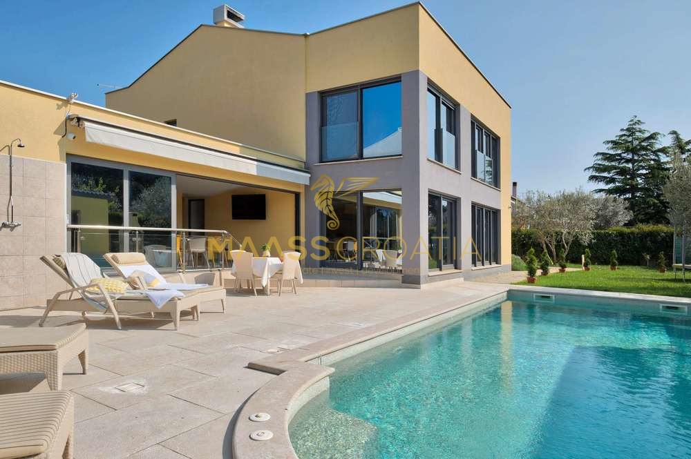 Moderní vila ve stylu Bauhaus s tradičními prvky, vkusně zařízená, bazén se slanou vodou